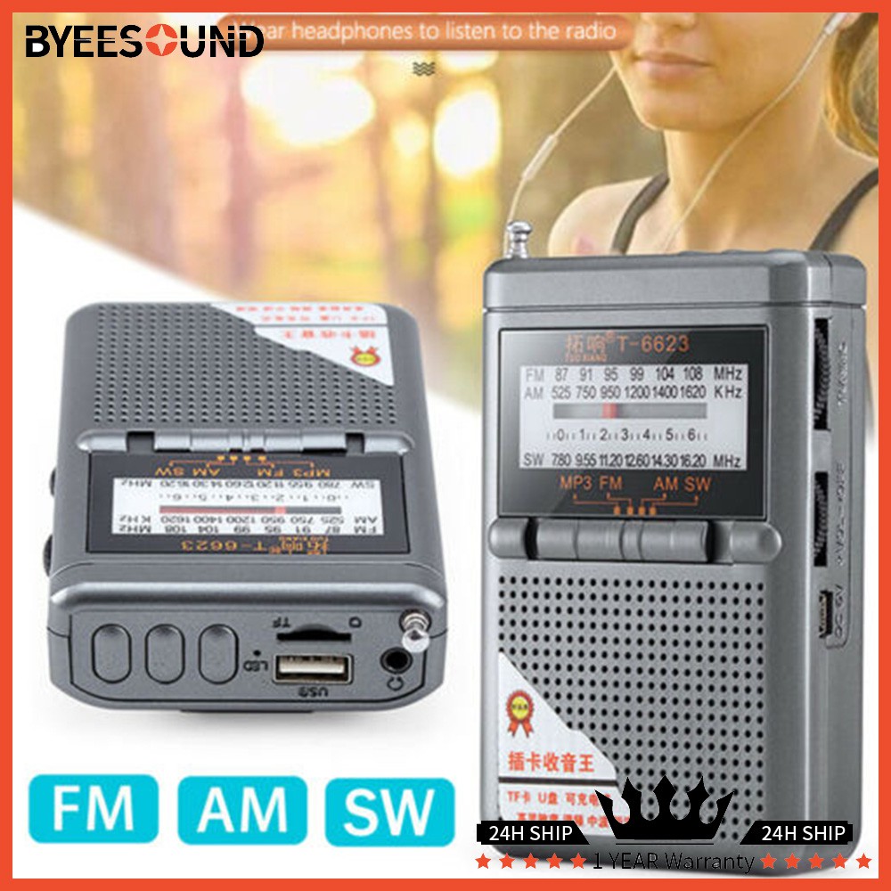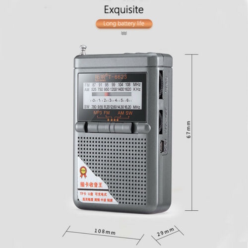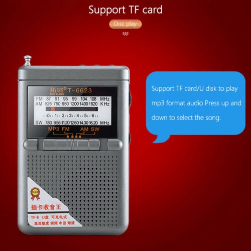 เครื่องเล่นวิทยุ AM FM SW Mp3 ขนาดเล็กรองรับการ์ด TF แบบพกพา