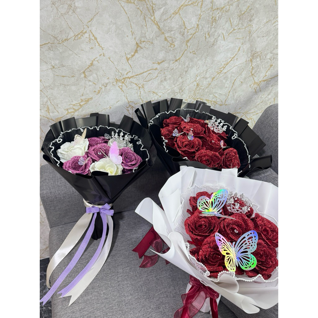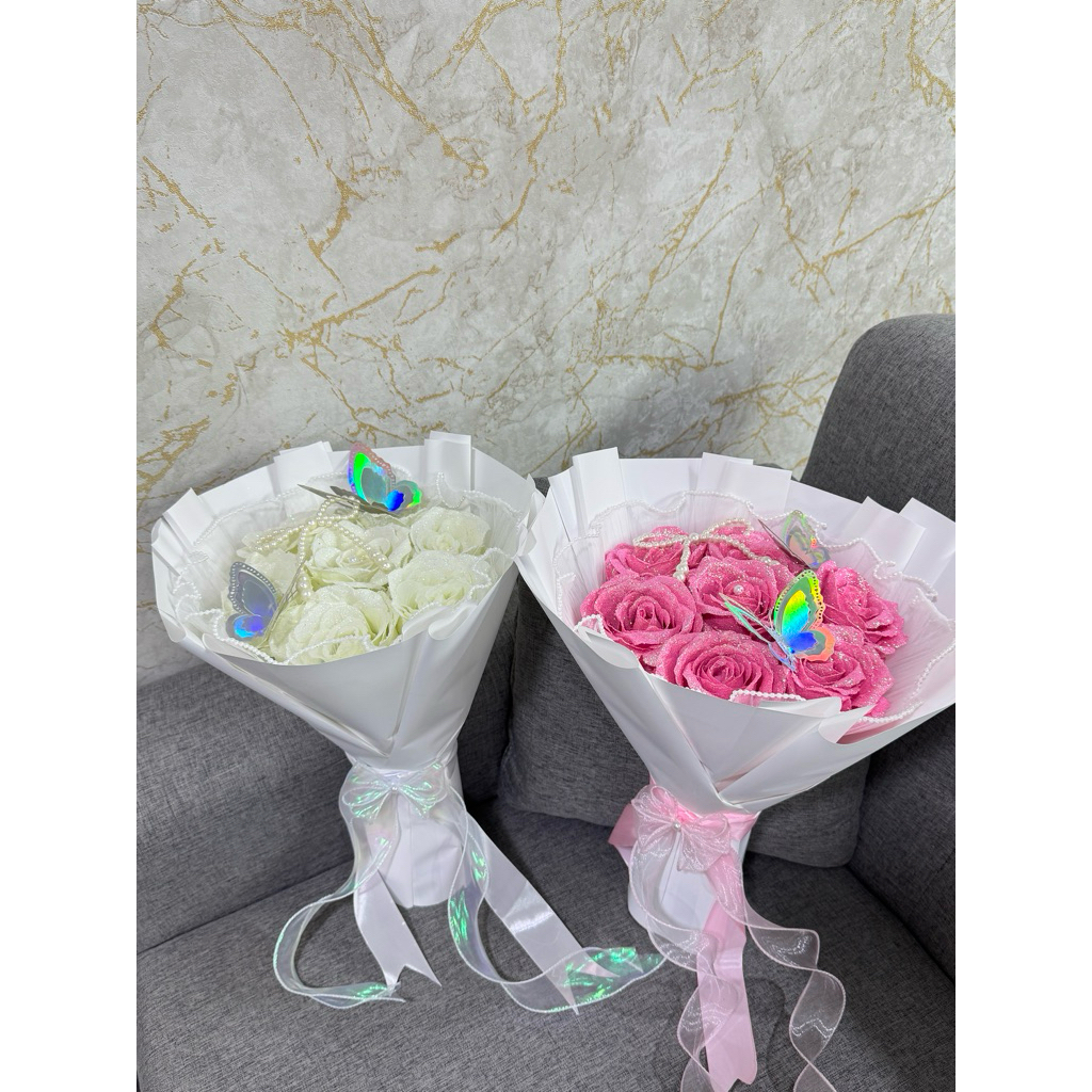กุหลาบกลิตเตอร์🌹ช่อ7ดอก ฟรี!!!ของตกแต่ง (รอ3-4วัน)