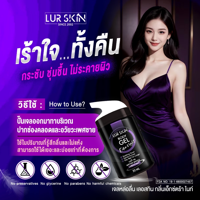 ⚡ส่งฟรี ไม่ระบุชื่อหน้ากล่อง⚡LurSkin Extra Night Gel 30ml เจลหล่อลื่น พกง่าย ฟินทุกที่ | กลิ่นเอ็กตร้าไนท์ ลดอาการเจ็บ