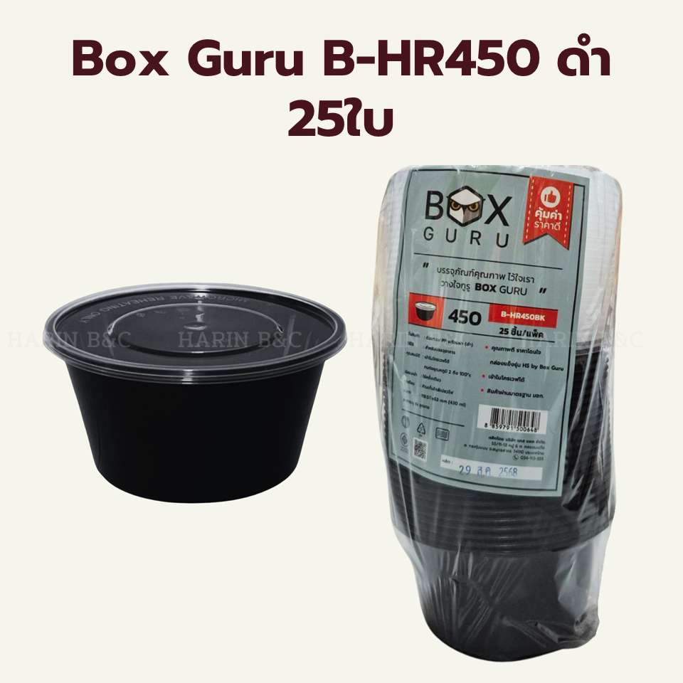 Box Guru ถ้วยพลาสติกใส่อาหาร B-HR450BK สีดำ พร้อมฝาปิด 25ชิ้น / Disposible Food Container B-HR 450ฺBK 25pcs
