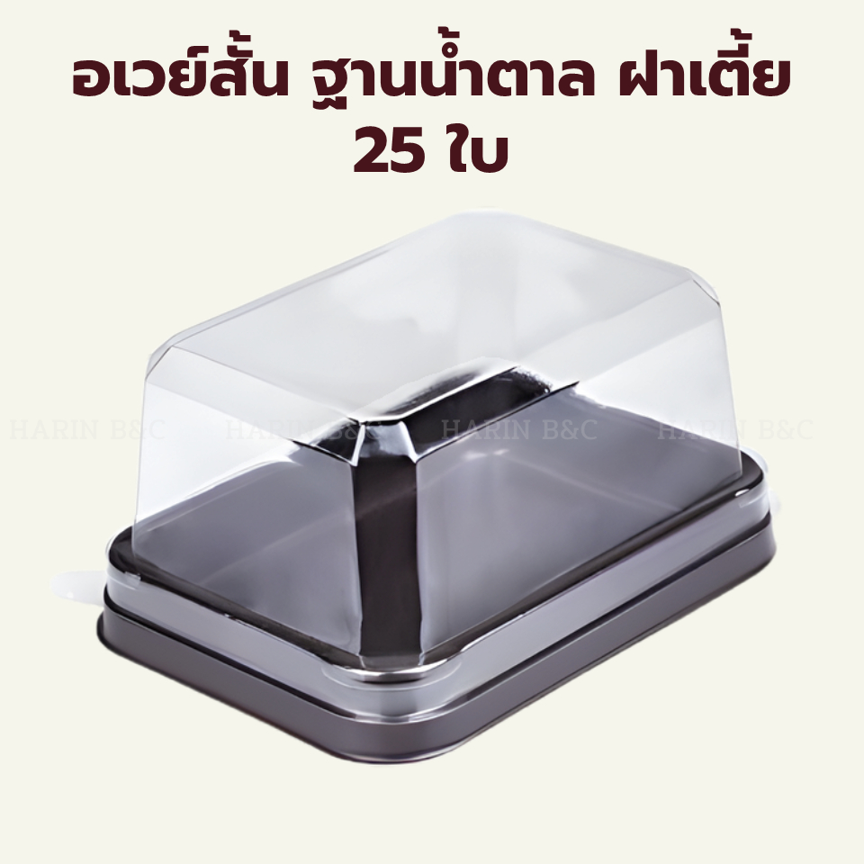อเวย์สั้น ฐานน้ำตาล ฝาเตี้ย 25ใบ 96x132x61mm Bakery Container Brown Base 25pcs
