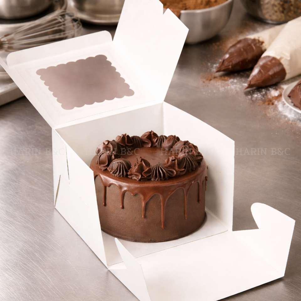 กล่องเค้ก 1 ปอนด์ ทรงสูง สีขาว 20.3x20.3x15cm 10 ใบ Box Journey No. 0101022 20.3x20.3x15cm White Cake Box