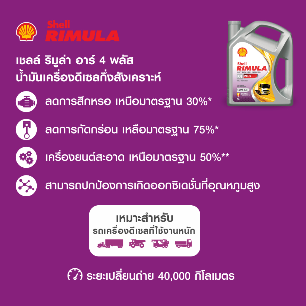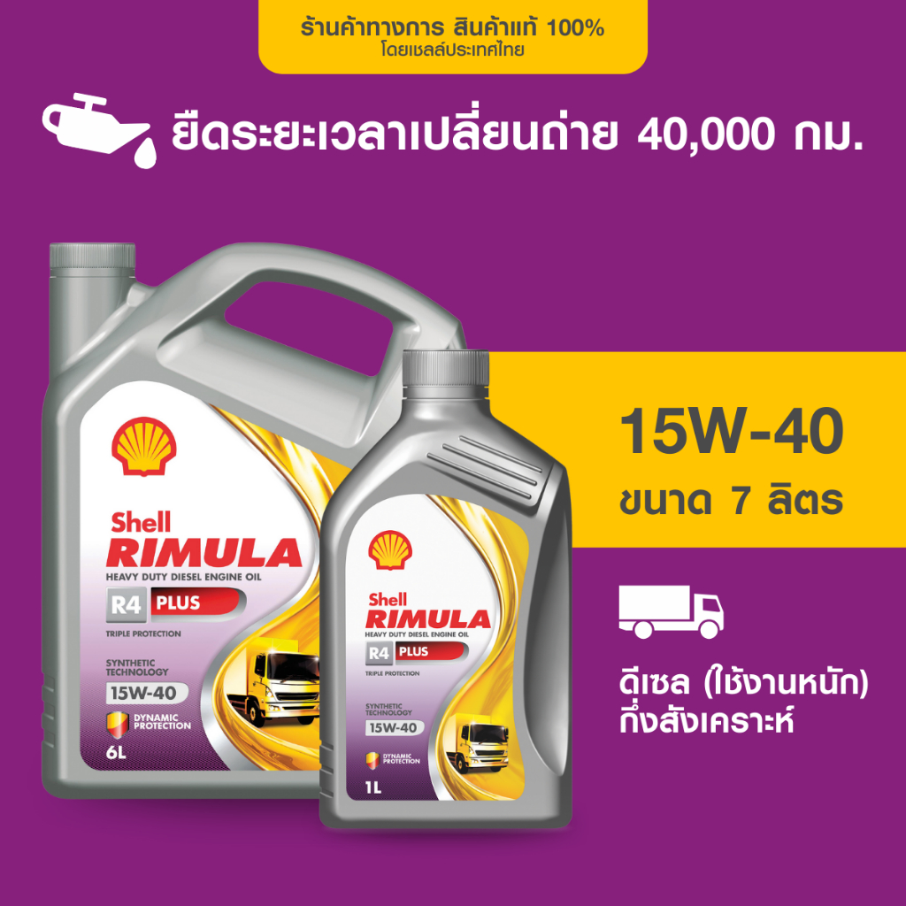 SHELL น้ำมันเครื่องดีเซล กึ่งสังเคราะห์ ใช้งานหนัก RIMULA R4 PLUS 15W-40 (6/7/8 ลิตร)