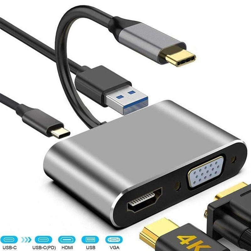 Typec Docking Station USB C Hub 4K HDMI VGA LAN Ethernet USB 3.0 พร้อม RJ45 สำหรับแล็ปท็อป