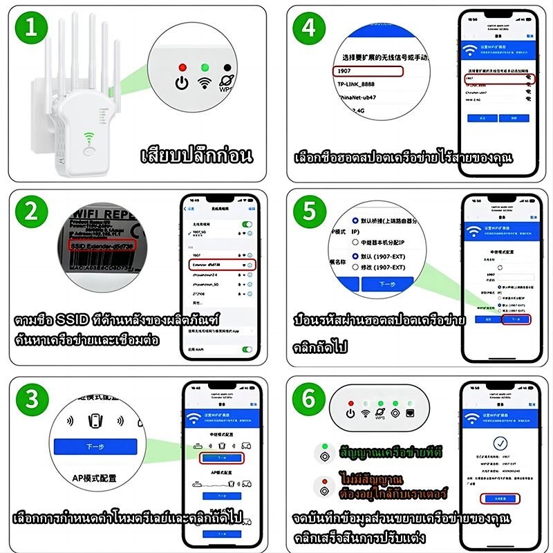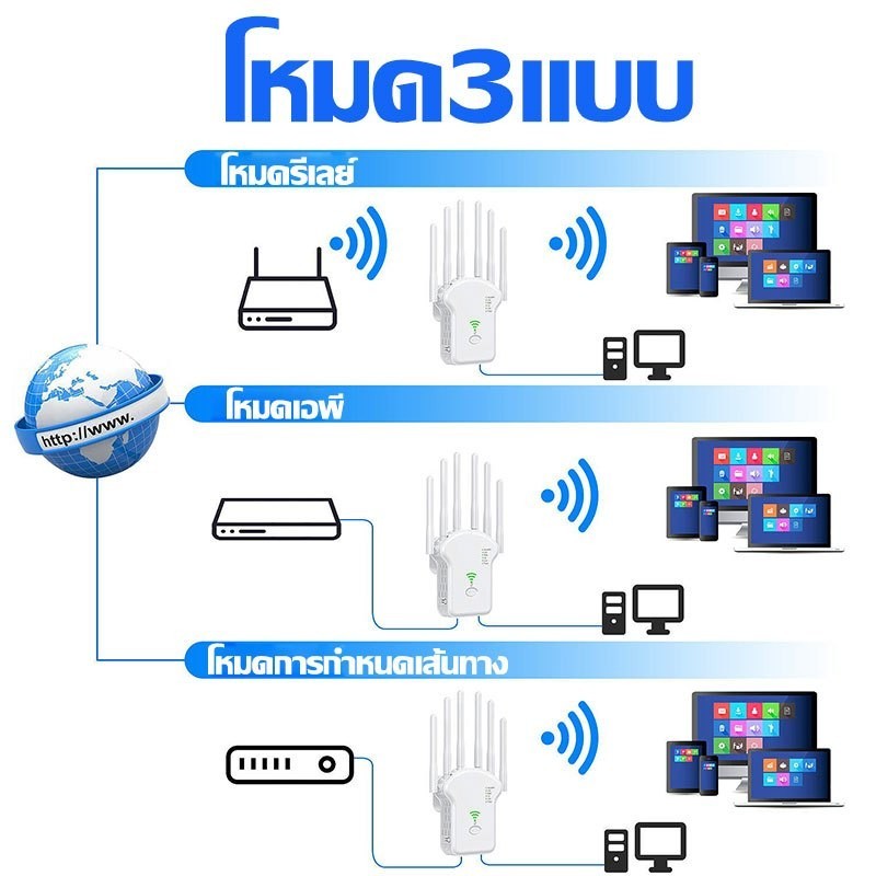 7200Mbps เร็วมากสัญญาณ WiFi Extender 6 เสาอากาศความเร็ว Router 2.4G/5GHZ Extender สัญญาณ WiFi Extender WiFi Repeater