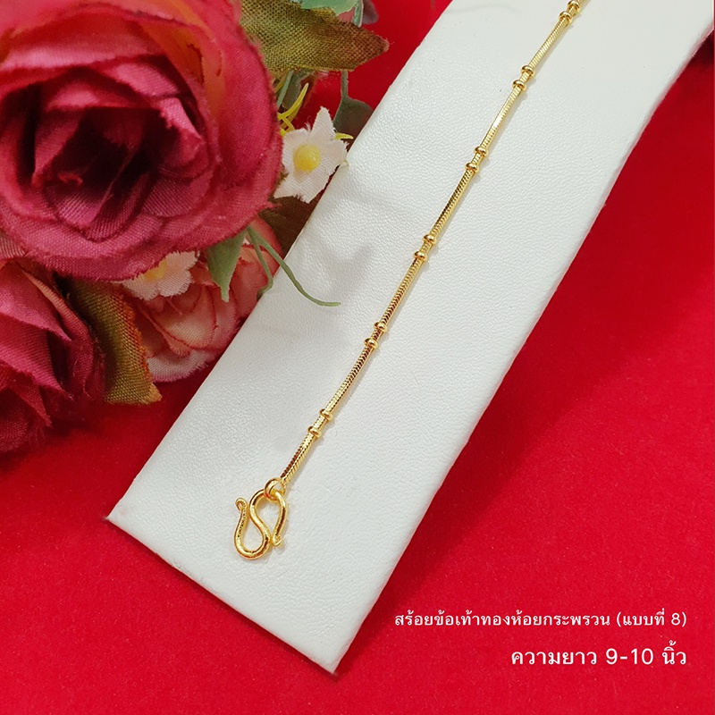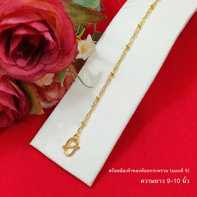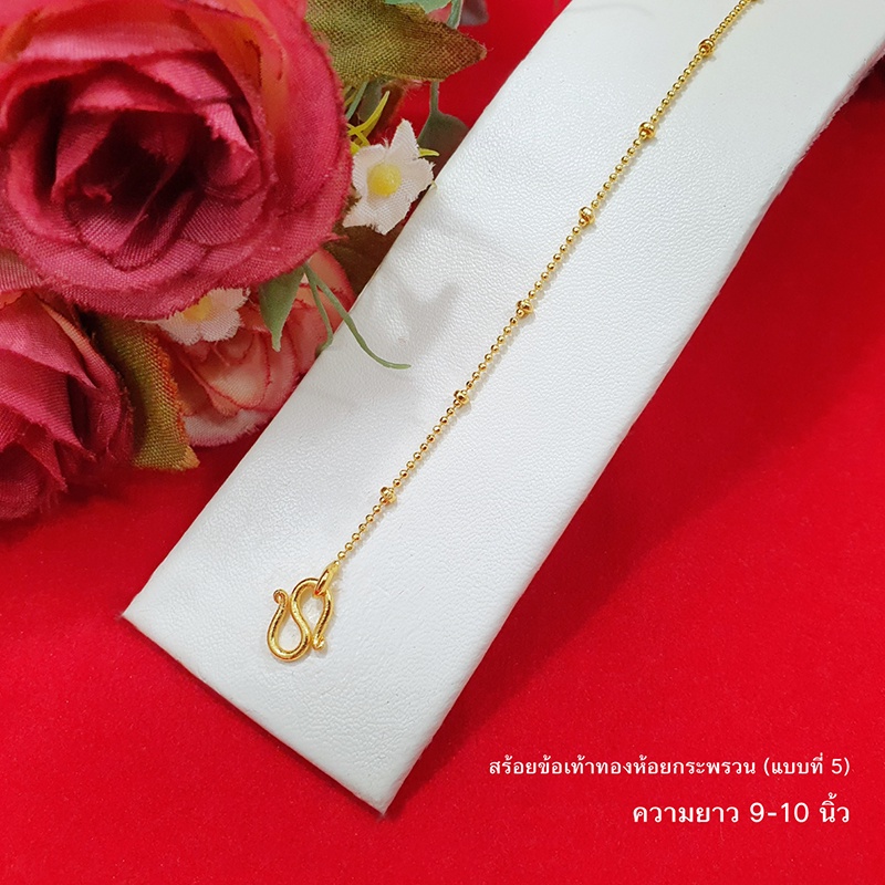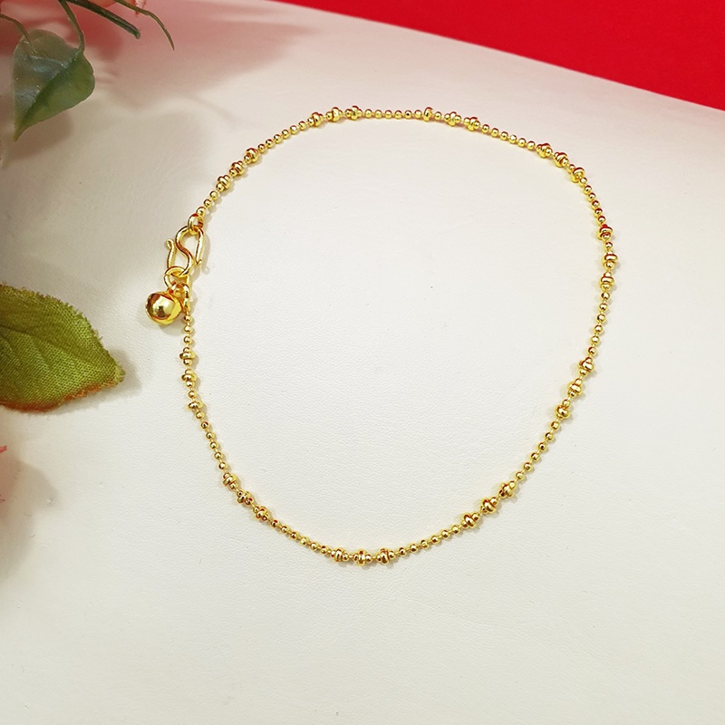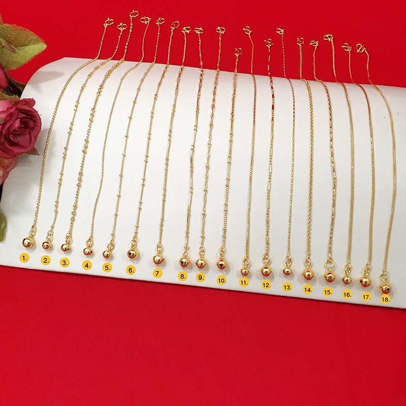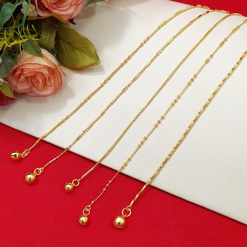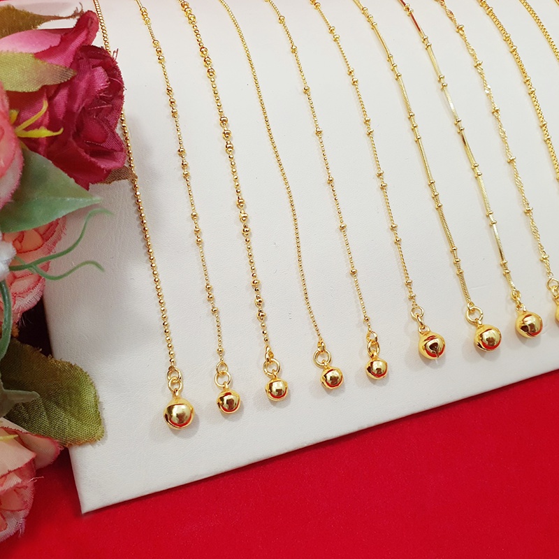 สร้อยข้อเท้าทองห้อยกระพรวนลาย ไข่ปลา ไข่เป็ด กระดูกงู 9,10,12.8 นิ้ว ทองชุบ ทองปลอม ใส่ได้ทุกโอกาส รูปถ่ายจากสินค้าจริง