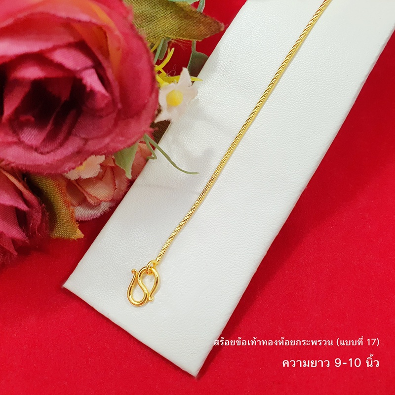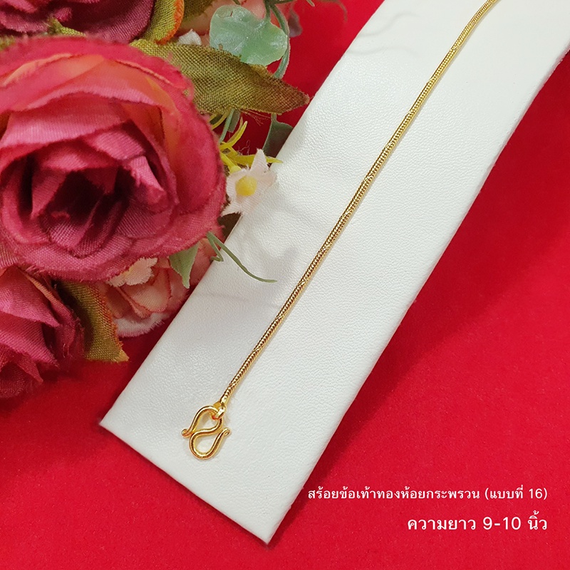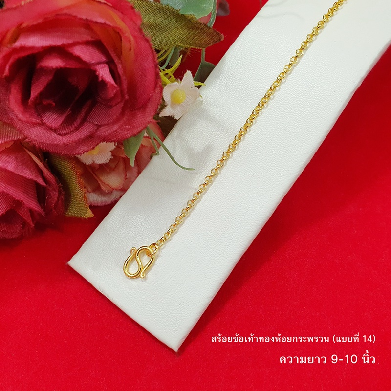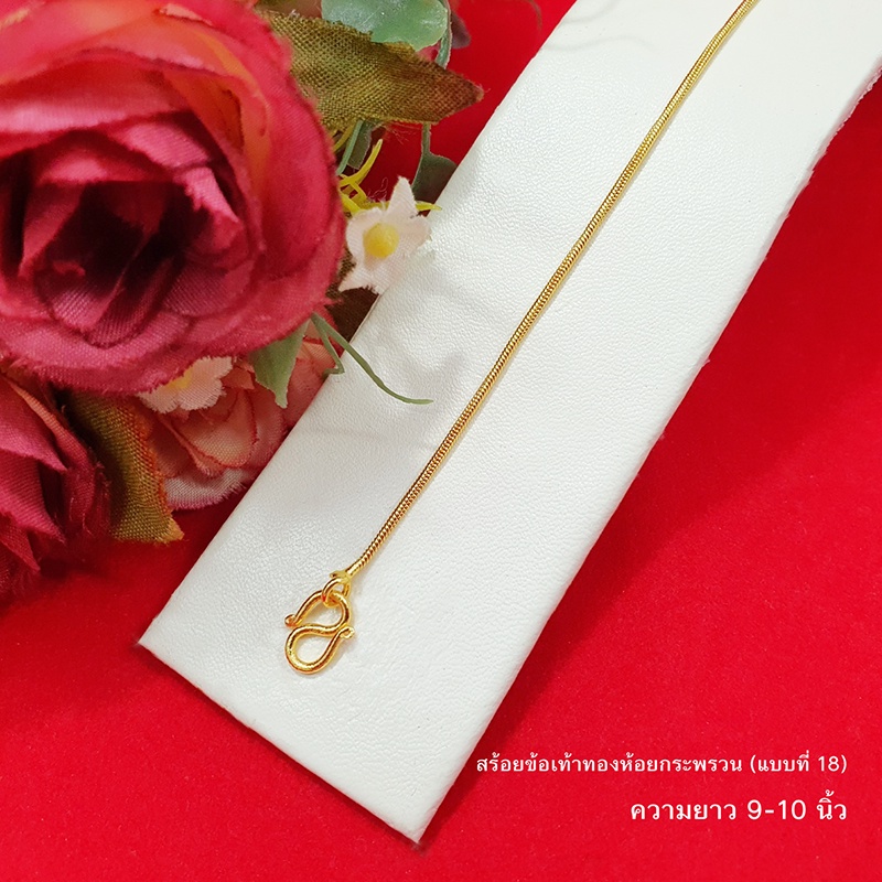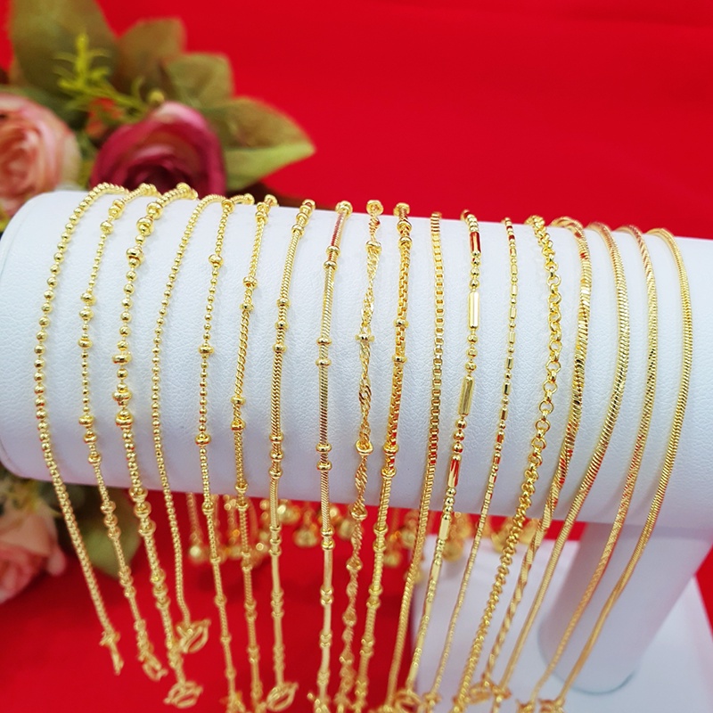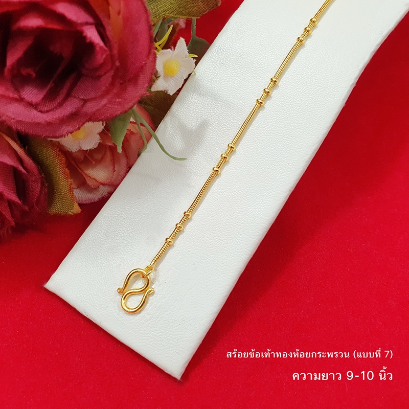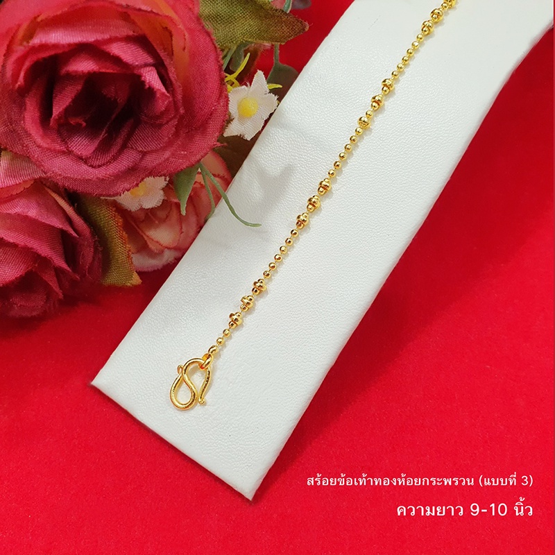 สร้อยข้อเท้าทองห้อยกระพรวนลาย ไข่ปลา ไข่เป็ด กระดูกงู 9,10,12.8 นิ้ว ทองชุบ ทองปลอม ใส่ได้ทุกโอกาส รูปถ่ายจากสินค้าจริง