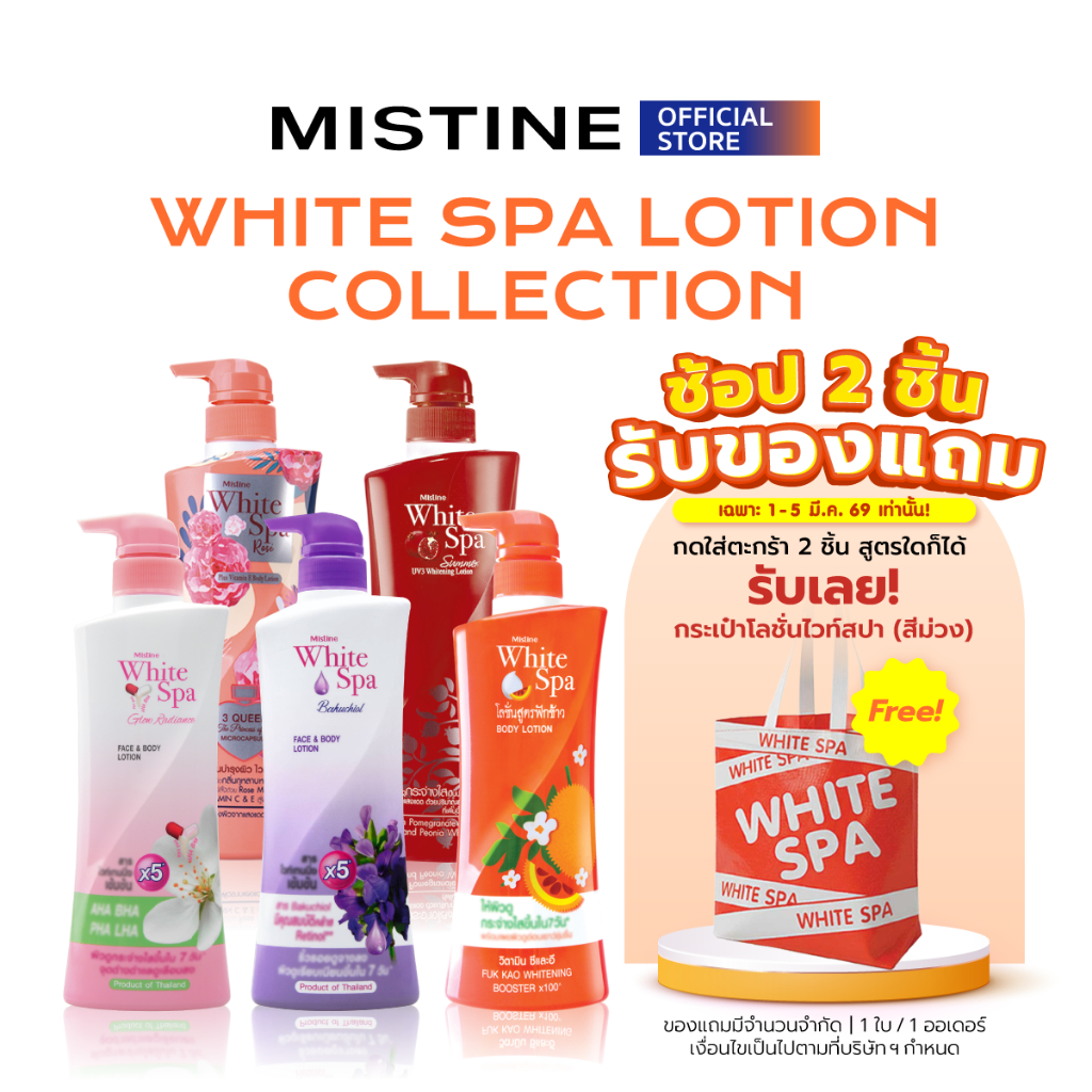 MISTINE WHITE SPA LOTION COLLECTION 400ML. โลชั่น,โลชั่นผิวออร่า,โลชั่นบำรุงผิว,ครีมทาผิว,บำรุงผิวกาย