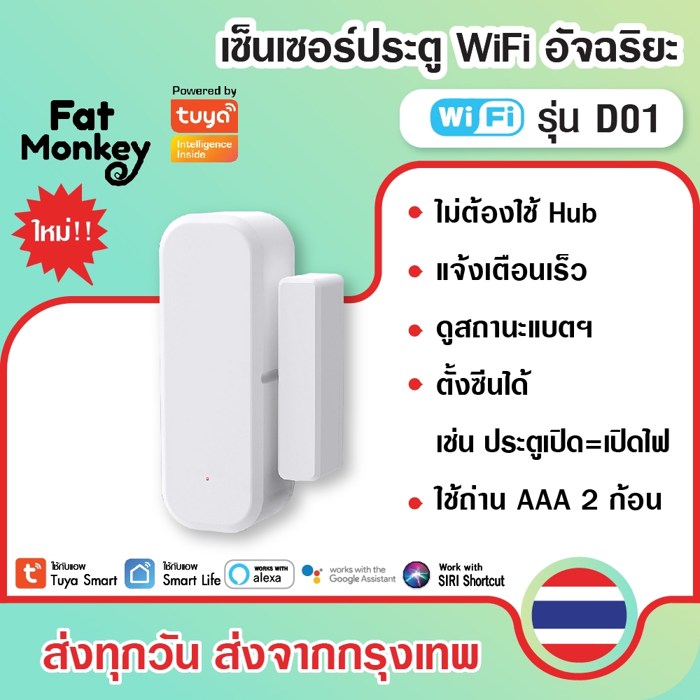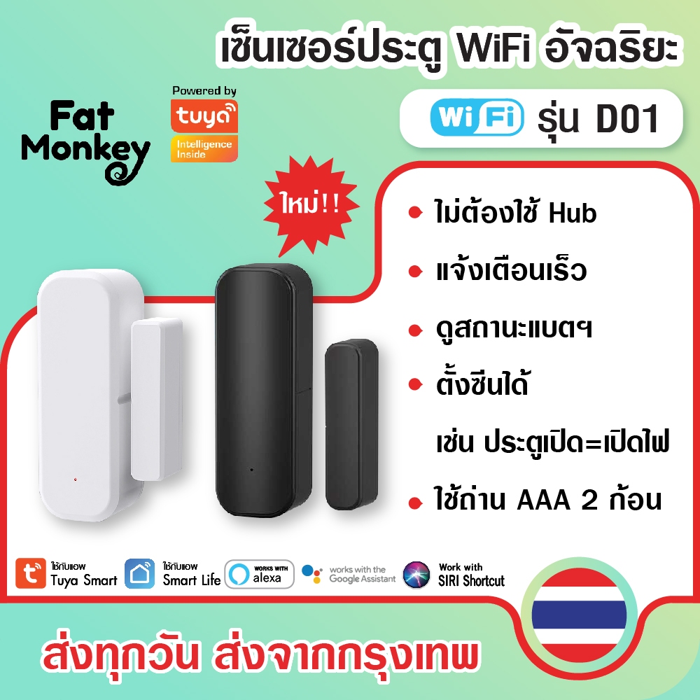 Tuya WiFi Door Sensor D01 D06 (No Hub) เซ็นเซอร์ประตู หน้าต่าง ลิ้นชักตู้ แจ้งเตือนผ่านมือถือ
