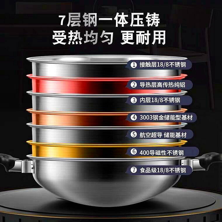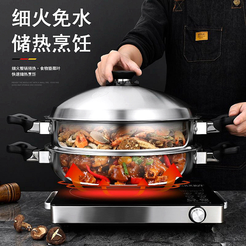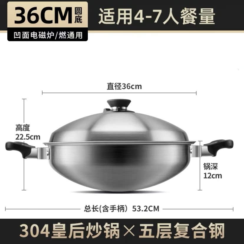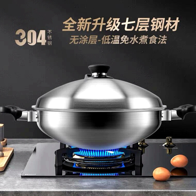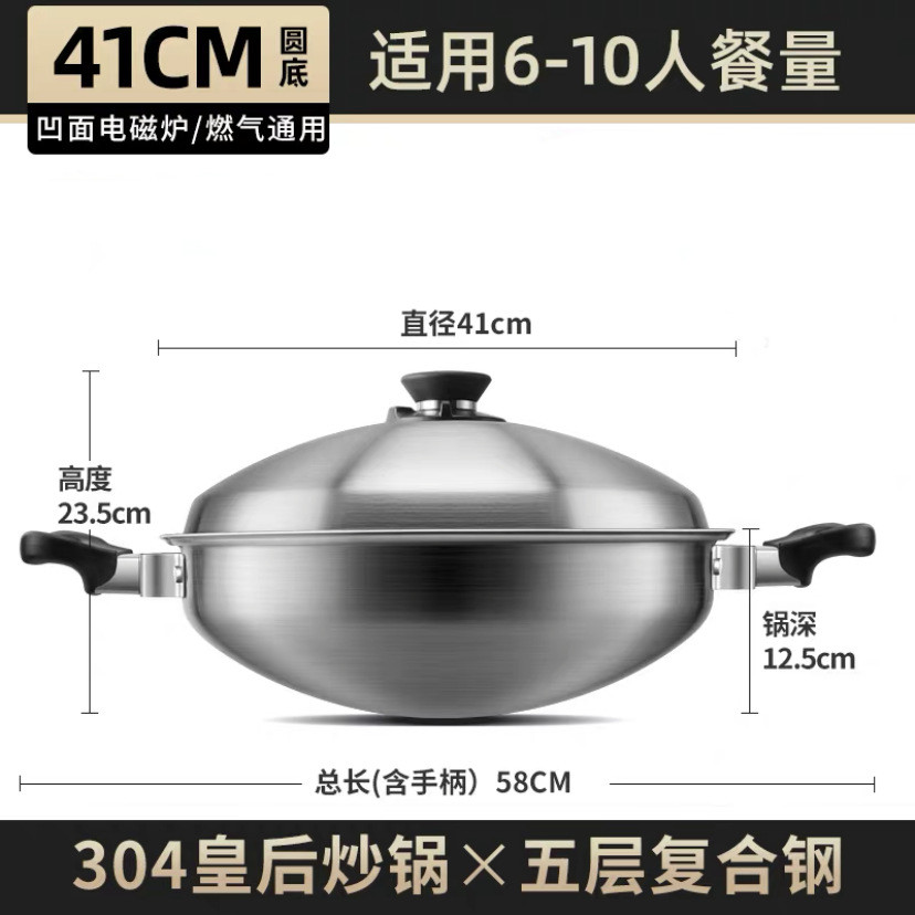 Amway Queen Pot 304 กระทะสแตนเลสในครัวเรือนจีนหม้อร้อนไร้น้ำหนาหม้อไม่ติดกระทะขนาดใหญ่