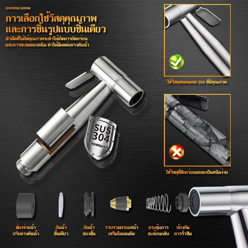 หัวฉีดชำระ ชุดสายฉีดชำระสแตนเลส[ครบชุด] สายฉีดก้น หัวชำระ หัวฉีดชำระ กรดพรีเมี่ยม รับประกันคุณภาพ # B-019