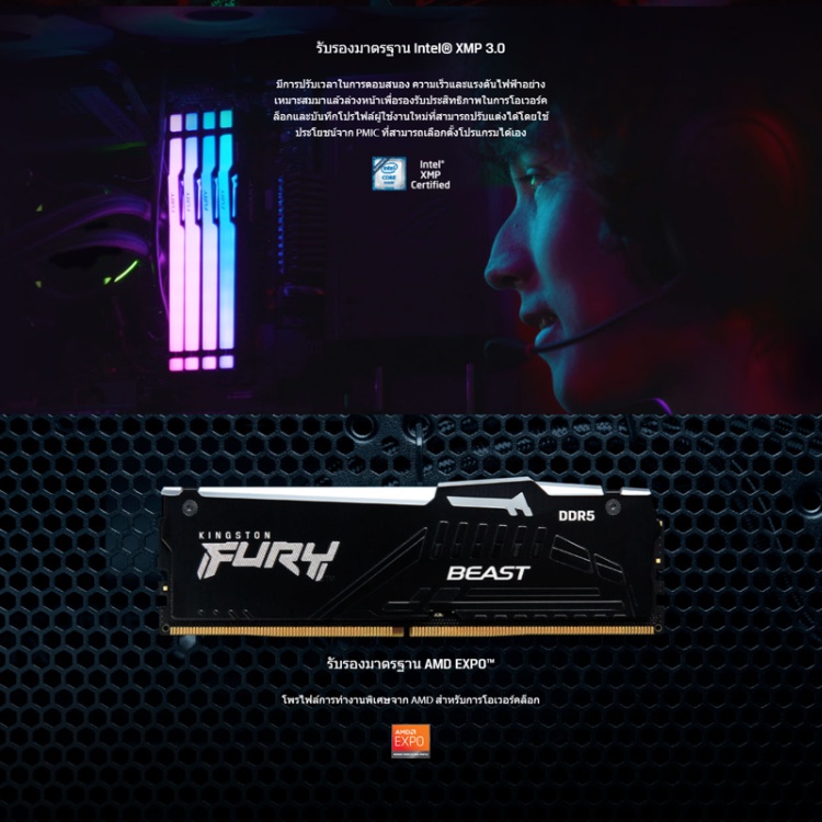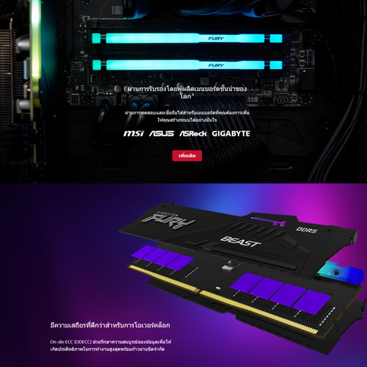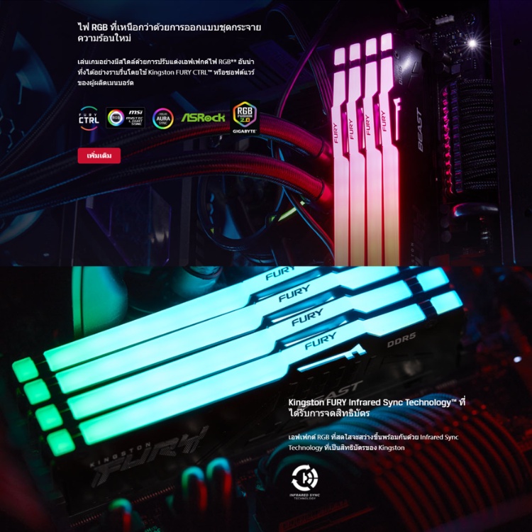 Kingston FURY Beast DDR5 RGB 32GB 5600MT/s (เเรมพีซี) (KF556C36BBEAK2-32)