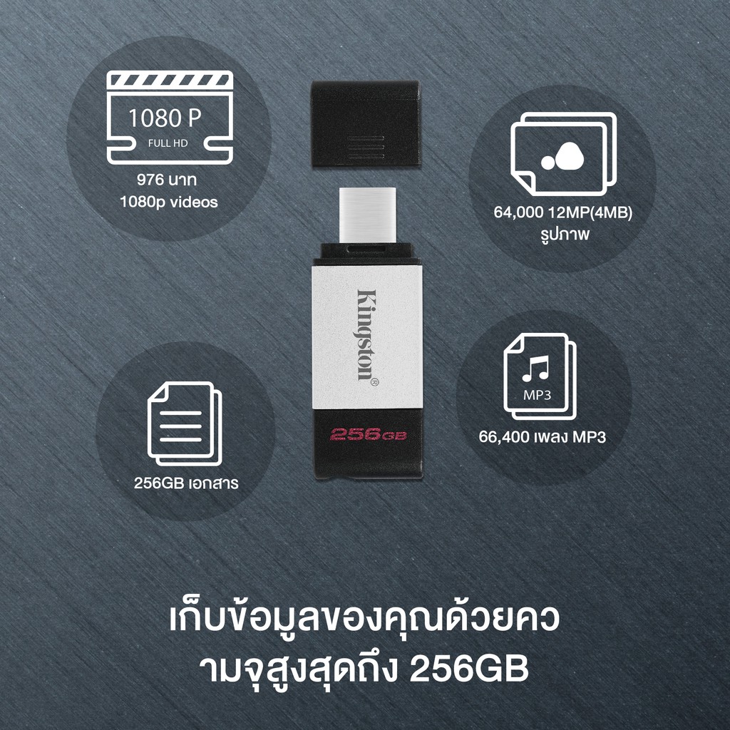 Kingston 256GB DataTraveler 80 USB Type-C ความเร็ว 3.2 Flash Drive (DT80/256GB)
