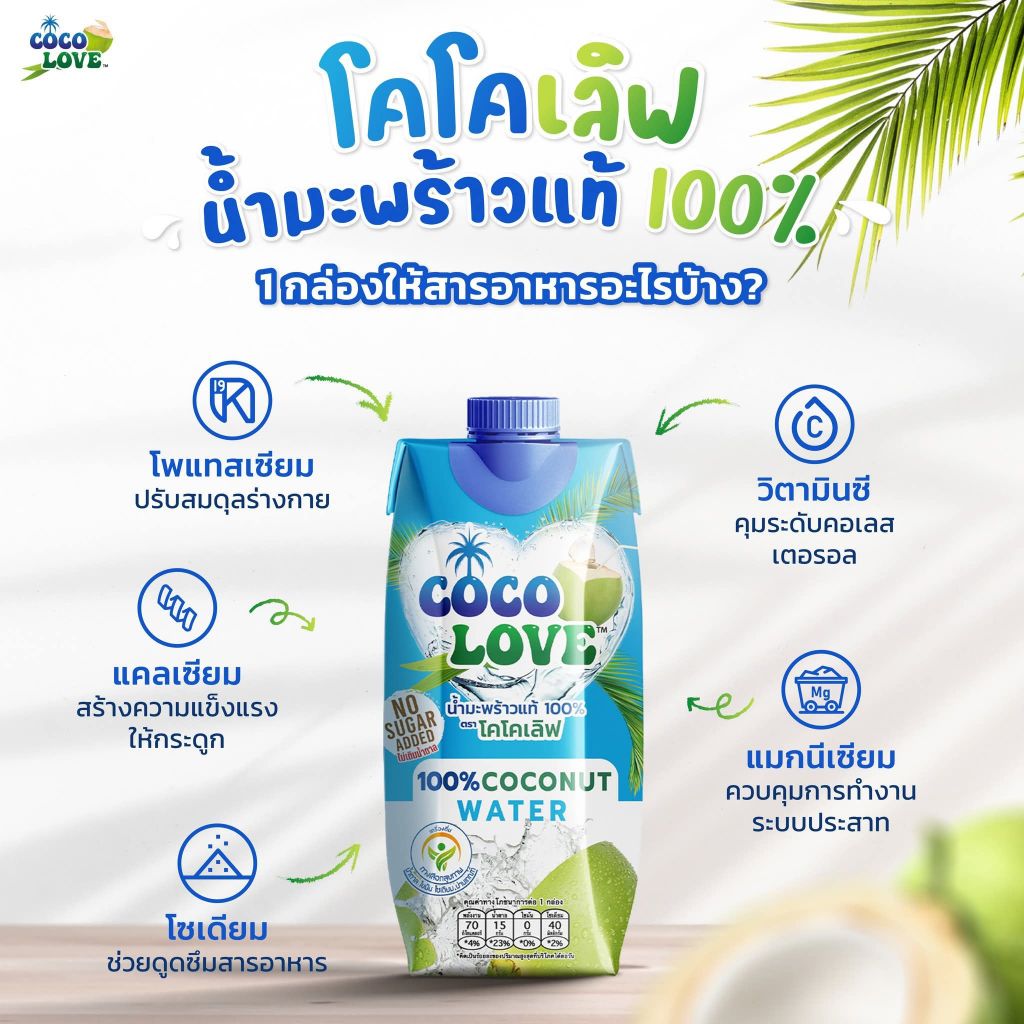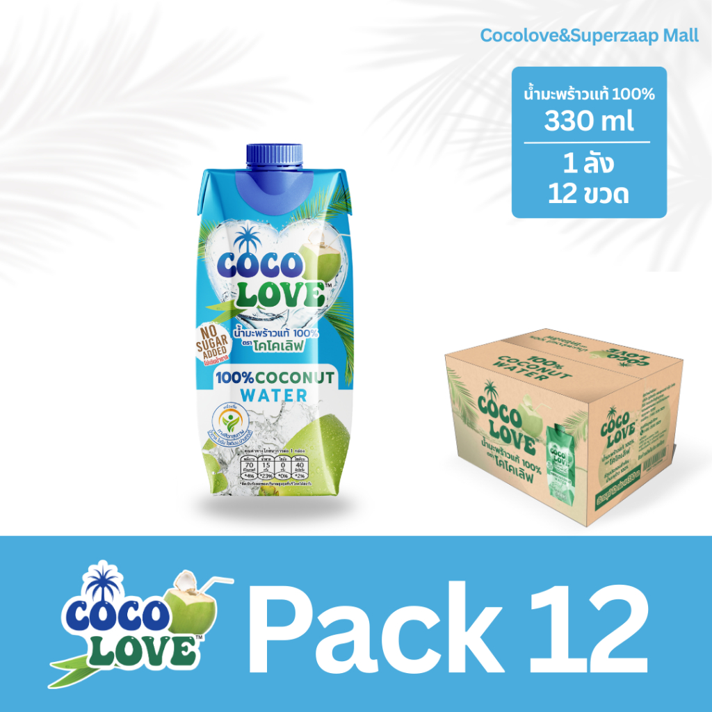 COCOLOVE น้ำมะพร้าวแท้ 100% ไม่เติมน้ำตาล (330ml x 12 ขวด) | น้ำมะพร้าวพร้อมดื่ม เครื่องดื่มสุขภาพ