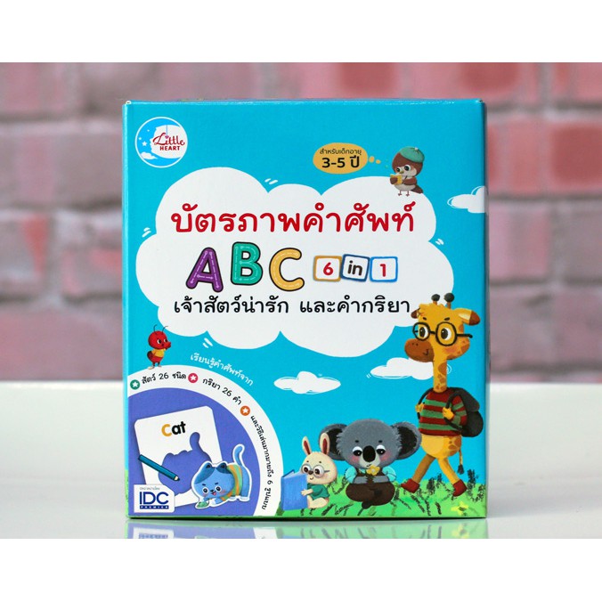 บัตรภาพคำศัพท์ A-B-C เจ้าสัตว์น่ารัก และคำกิริยา 6-in-1 Flashcards หนังสือเด็ก พัฒนาการ สอนลูก เรียนรู้