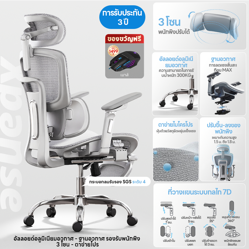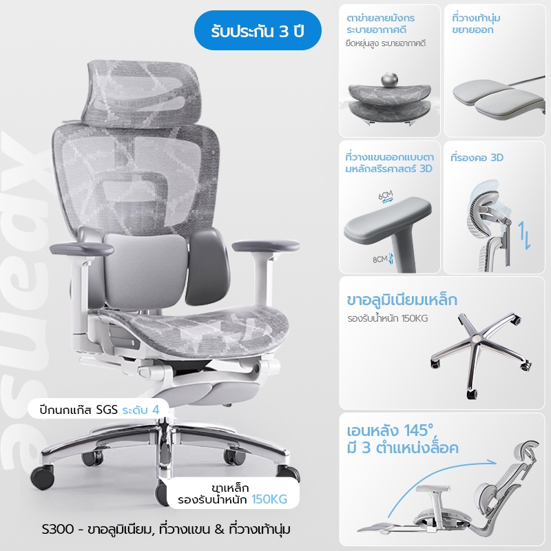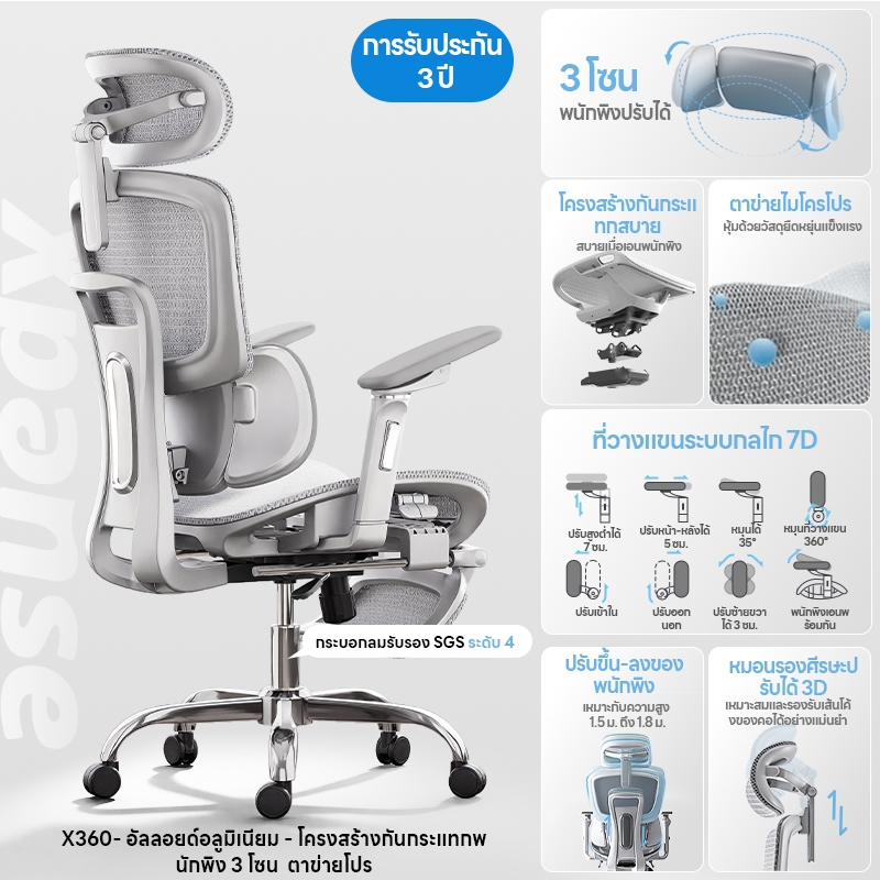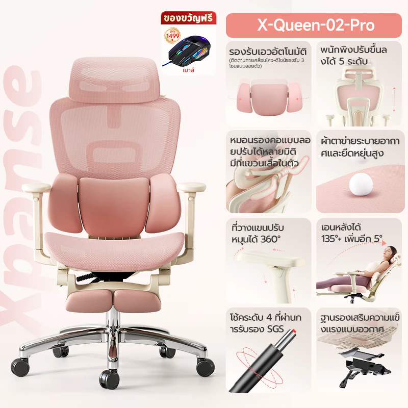 Xpanse X360 เก้าอี้สุขภาพ Ergonomic Chair พนักพิงเอว 3 โซน ปกป้องสุขภาพกระดูกสันหลังส่วนเอว ไม่ปวดหลังเมื่อนั่งนานๆ