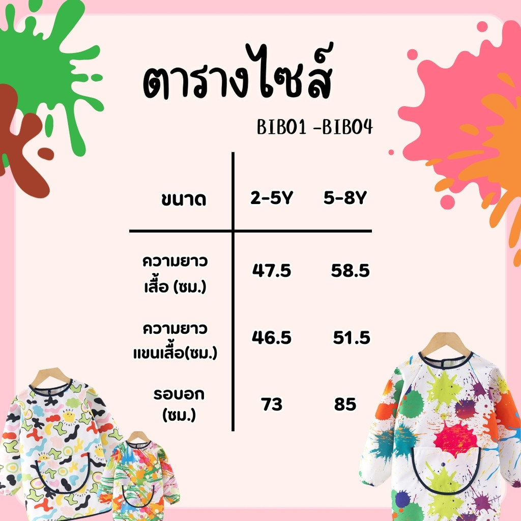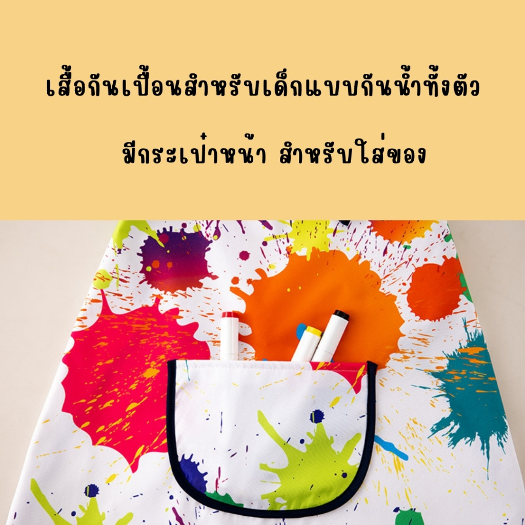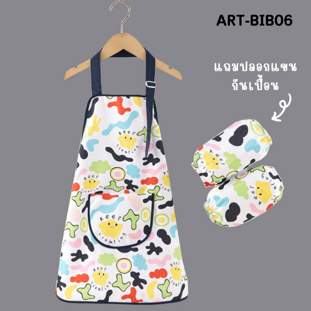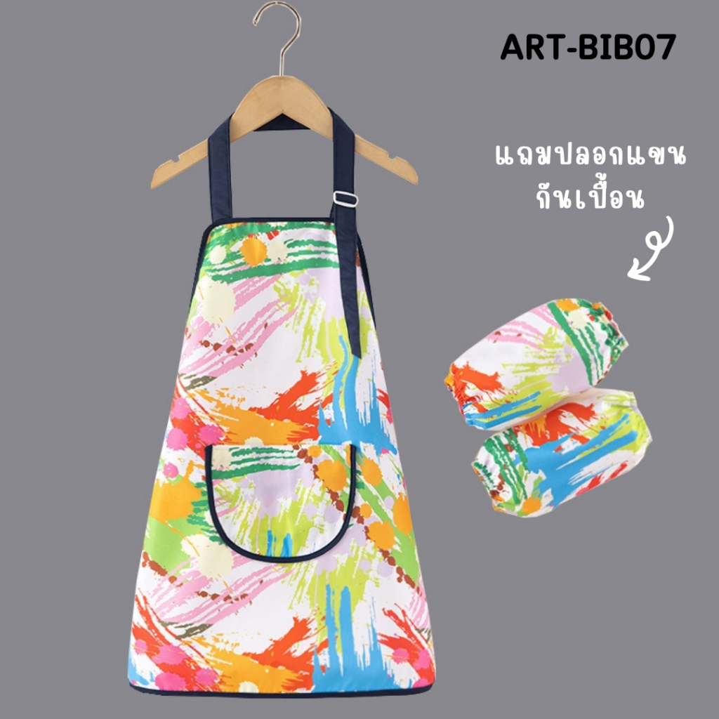 ส่งด่วน ร้านไทย เสื้อกันเปื้อนเด็ก แขนยาว ผ้ากันเปื้อน ลายศิลปะ ใส่ได้ทั้งชายและหญิง ART-BIB