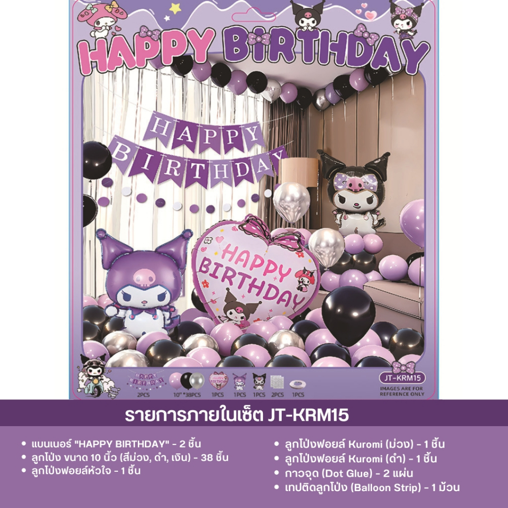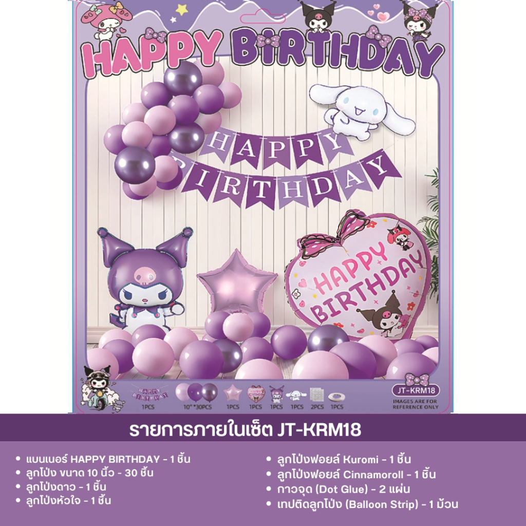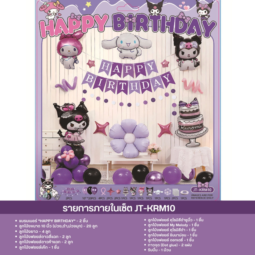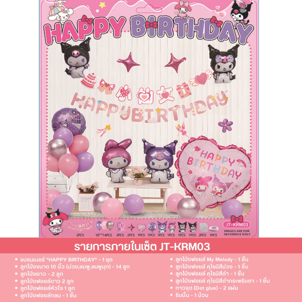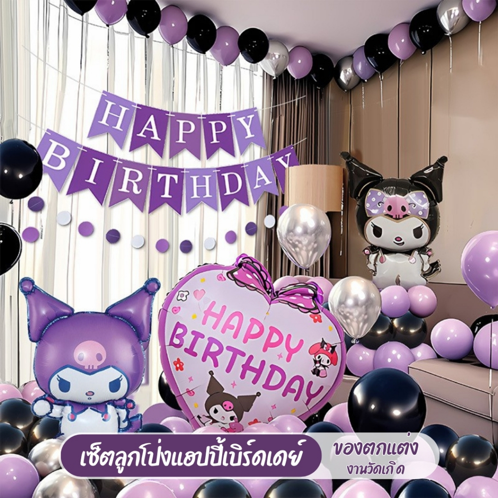 เซ็ตลูกโป่งวันเกิด ธีมคุโรมิ มายเมโลดี้ ชินนาม่อน สีม่วงชมพู น่ารัก พร้อมตกแต่งครบชุด JT-KRM
