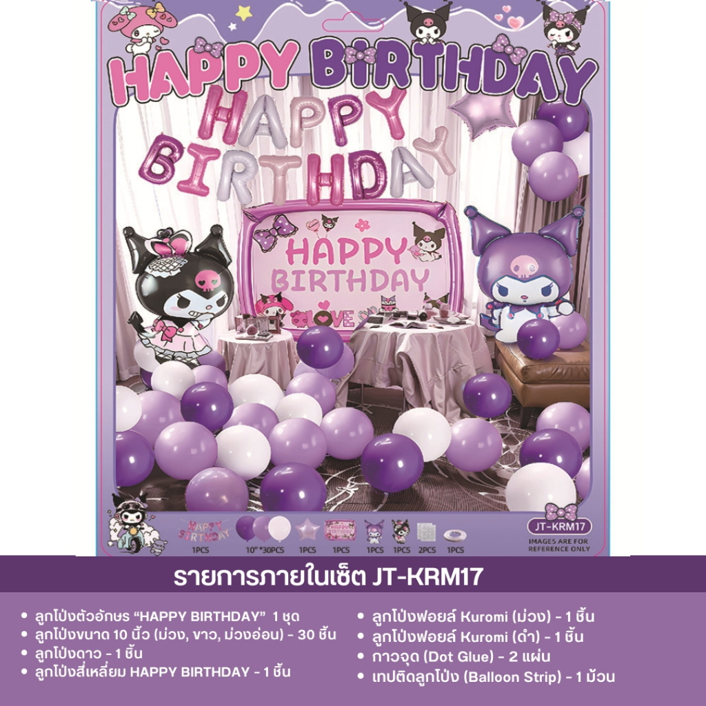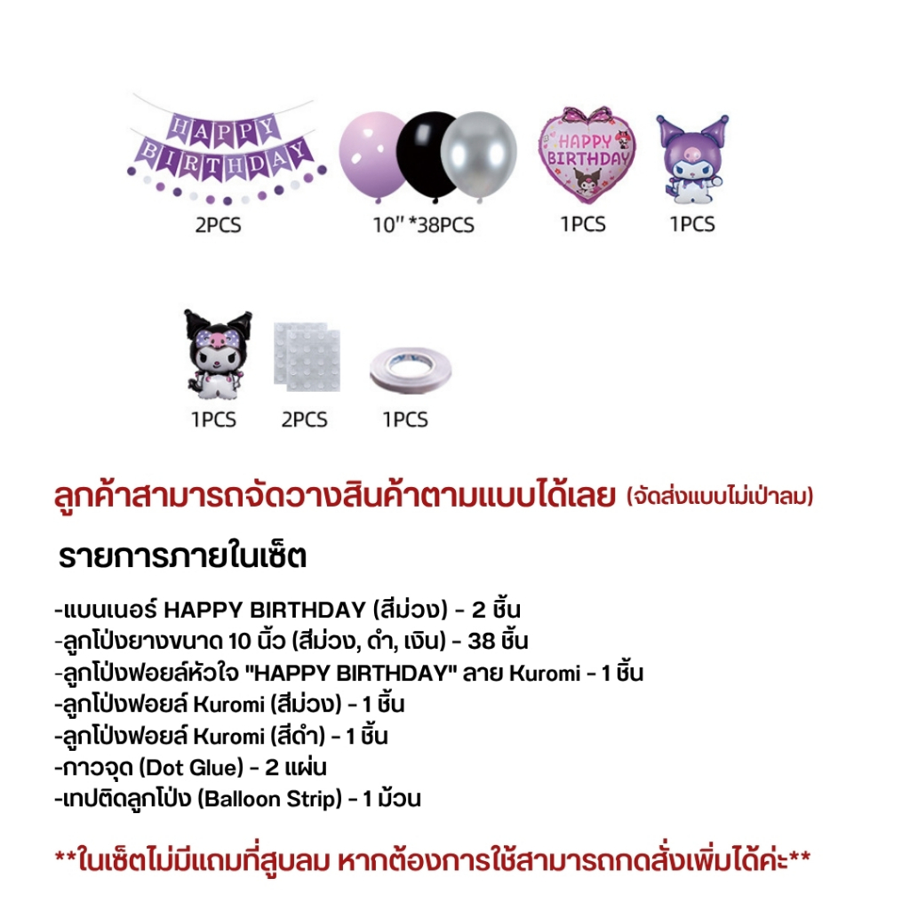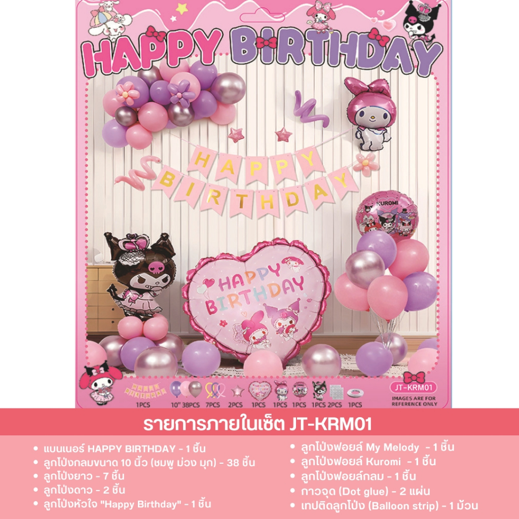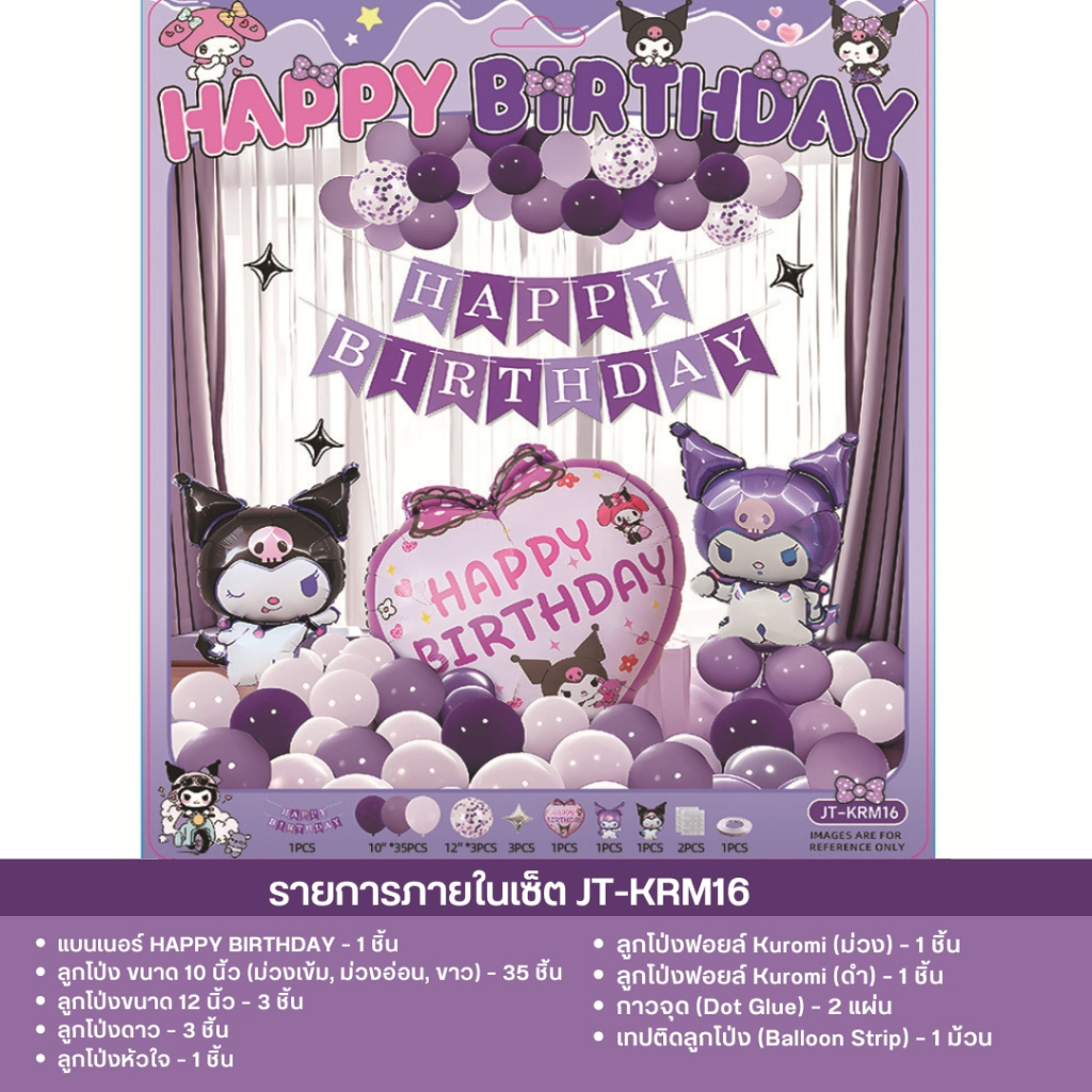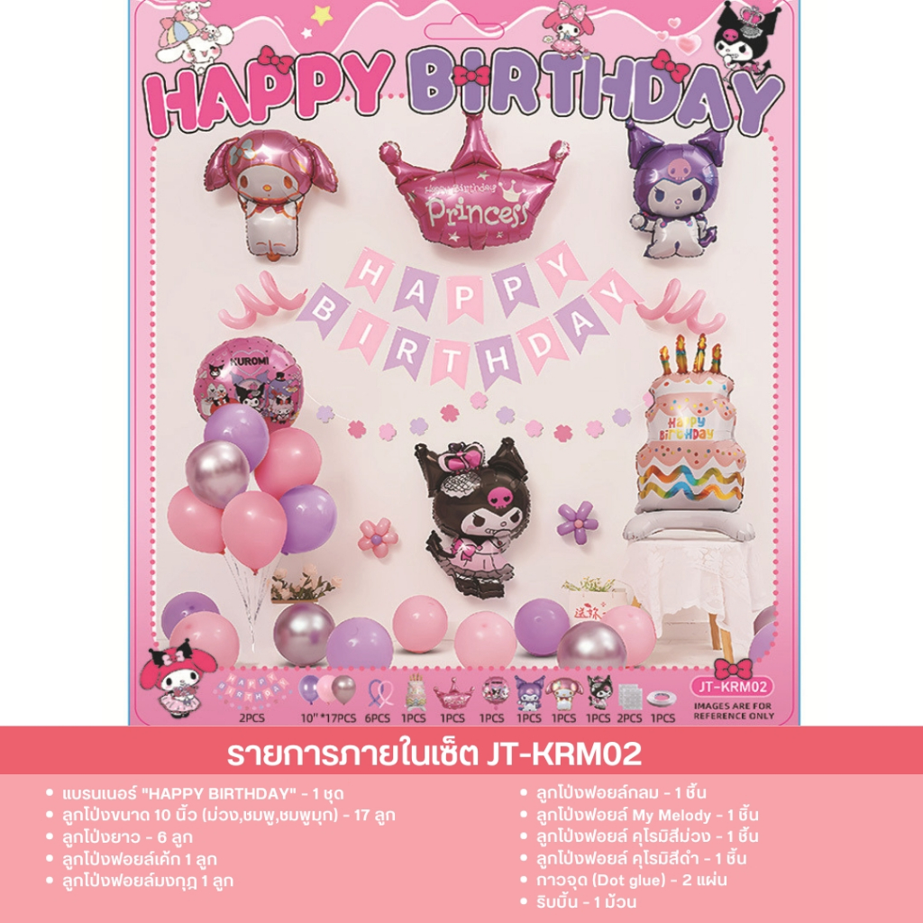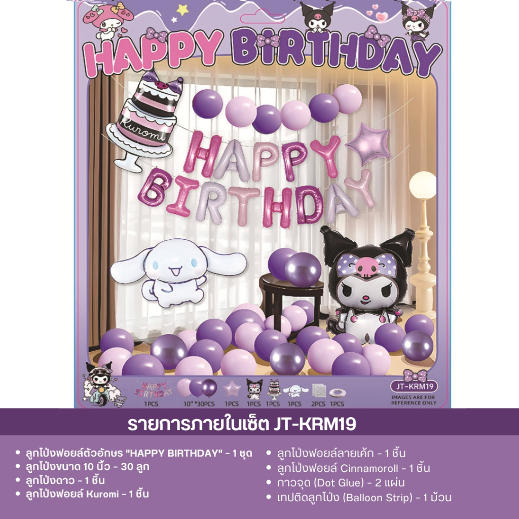 เซ็ตลูกโป่งวันเกิด ธีมคุโรมิ มายเมโลดี้ ชินนาม่อน สีม่วงชมพู น่ารัก พร้อมตกแต่งครบชุด JT-KRM