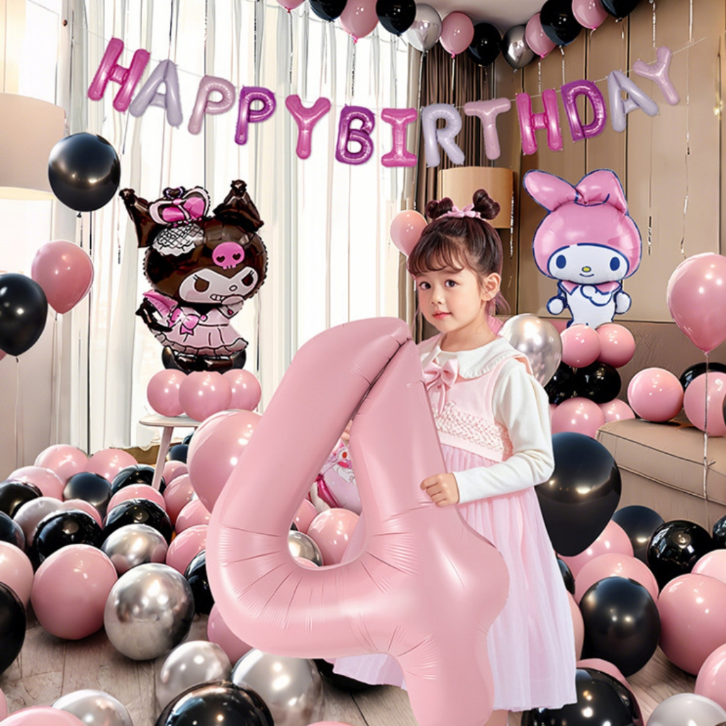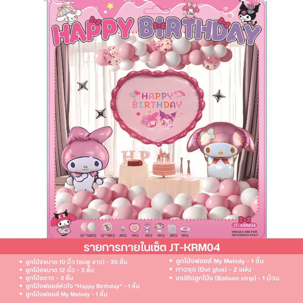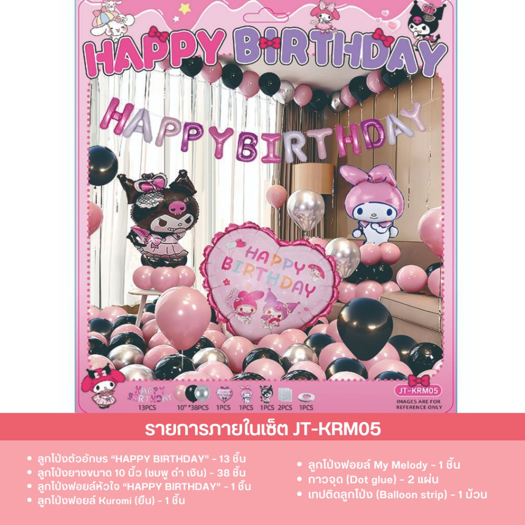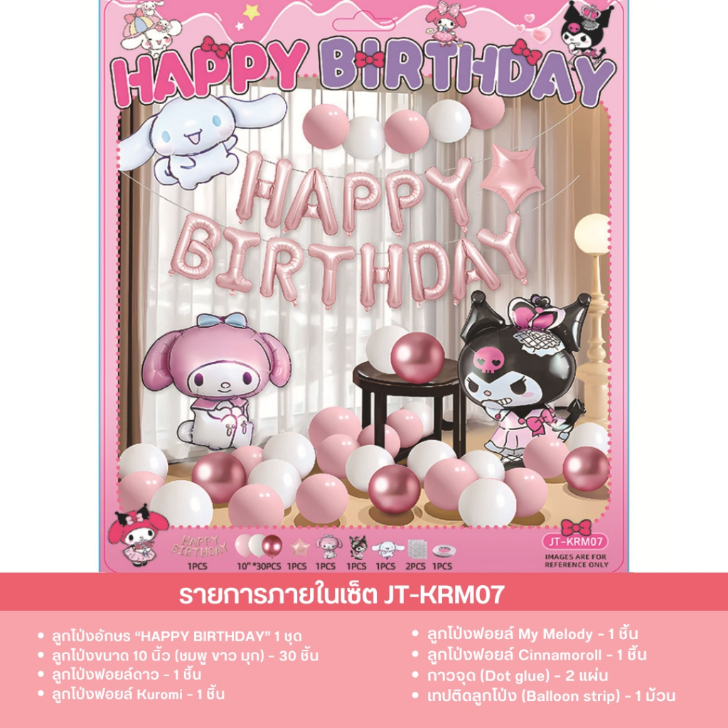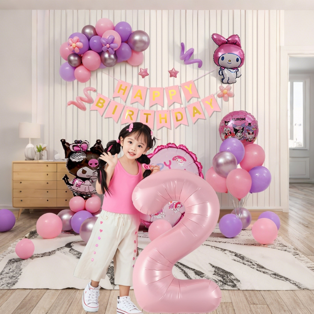 เซ็ตลูกโป่งวันเกิด ธีมคุโรมิ มายเมโลดี้ ชินนาม่อน สีม่วงชมพู น่ารัก พร้อมตกแต่งครบชุด JT-KRM