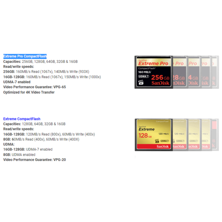 SanDisk 128GB Extreme Compact Flash 120MB/s
