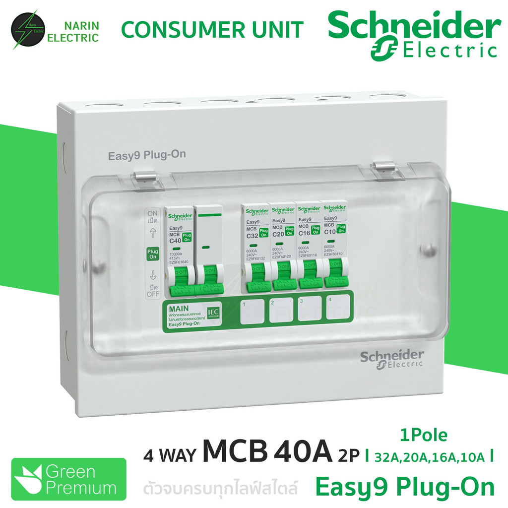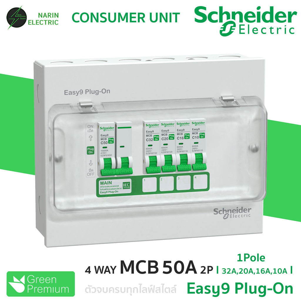 Schneider ตู้คอนซูมเมอร์ 4 ช่อง เมน RCBO&MCB 40A,50A,63A รุ่น Easy9 Plug-On Consumer Unit