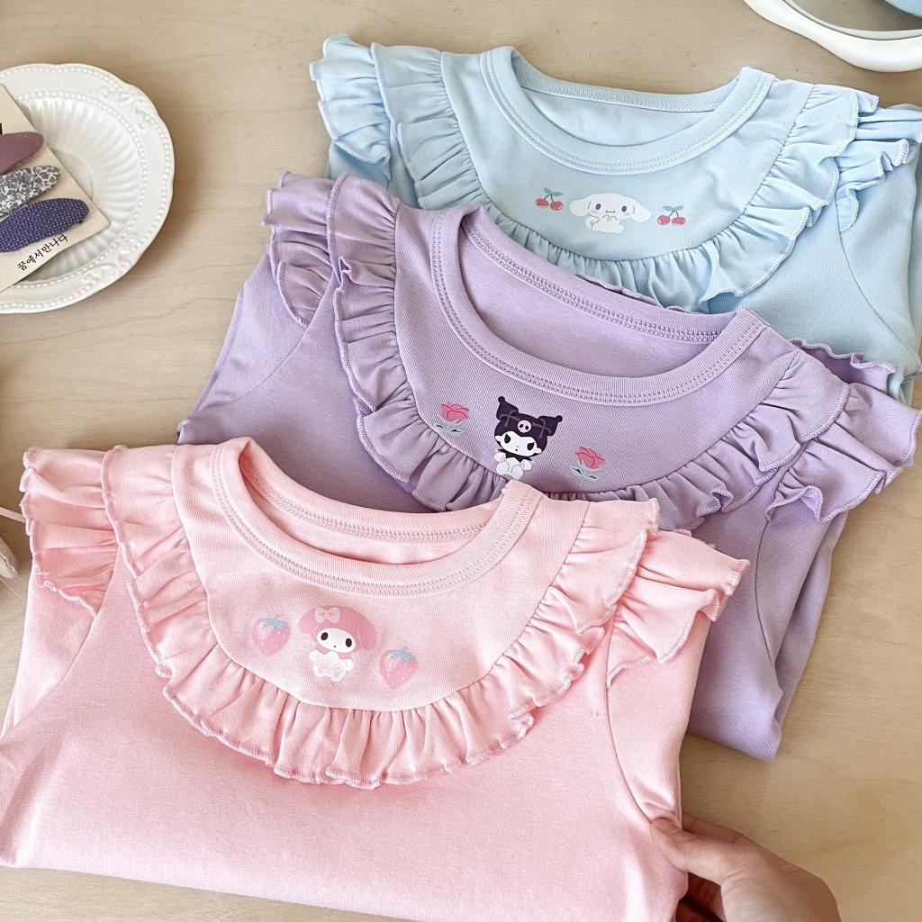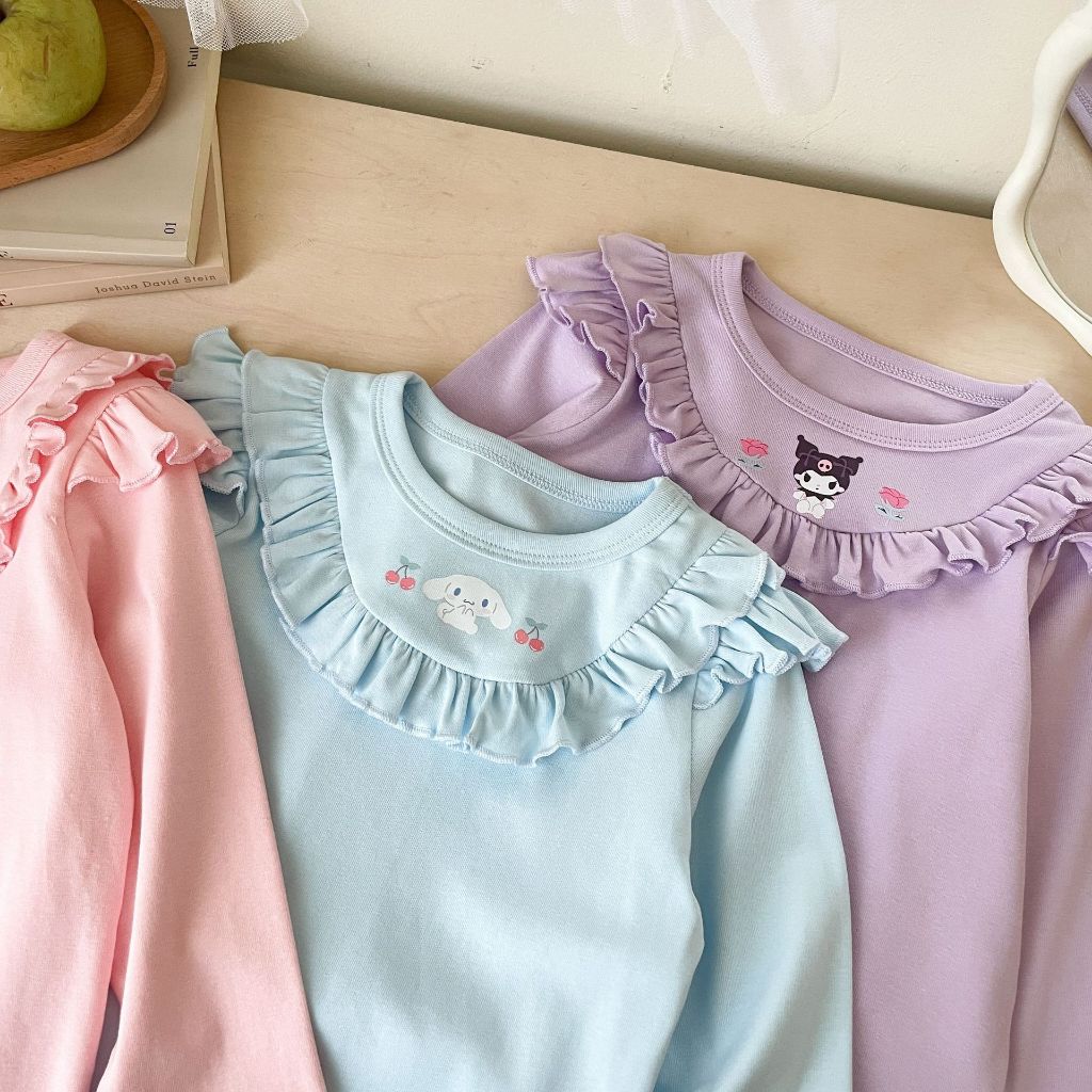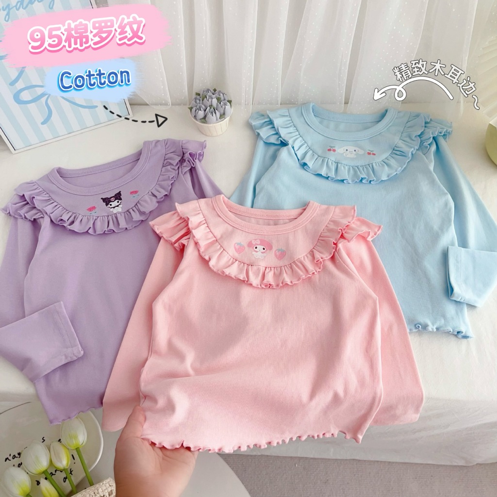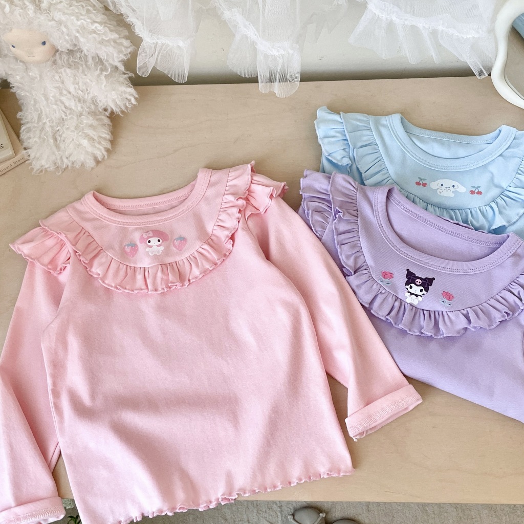พร้อมส่ง 🇹🇭 เสื้อแขนยาว คอกลม เด็กผู้หญิง พิมพ์ลายการ์ตูน เนื้อดี งานน่ารัก