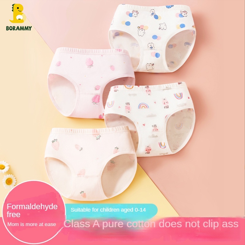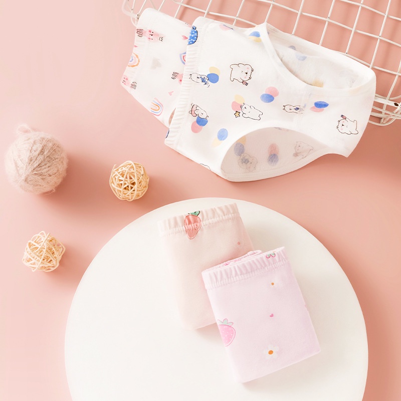 Qqs256 [แพ็ค 4 ชิ้น] ชุดชั้นในผ้าฝ้ายทรงสามเหลี่ยมสำหรับเด็ก