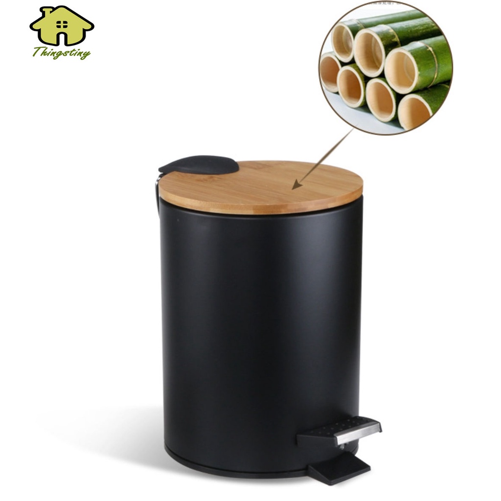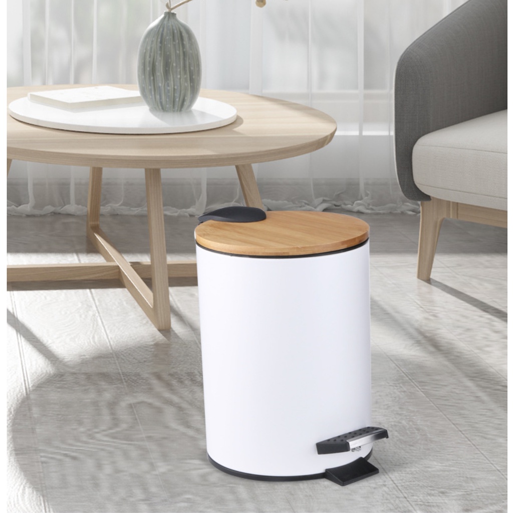 ถังขยะ เหยียบ ฝาไม้ ขนาด 3L หรูหรา กะทัดรัด พร้อมส่ง TT052