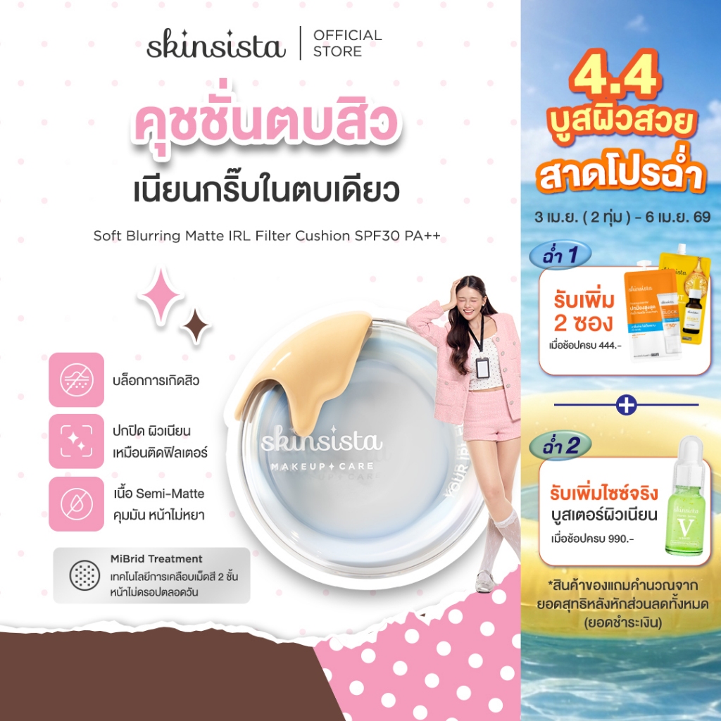 Skinsista คุชชั่นตบสิว ปกปิด บำรุง Soft Blurring Matte IRL Filter Cushion SPF30 PA++ 12g.