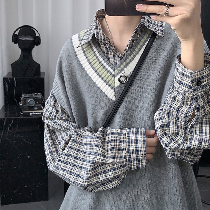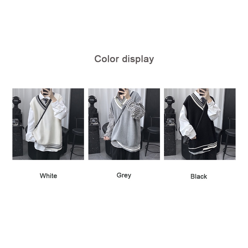 PannoFluxus เสื้อกั๊กถักคู่คอวีแฟชั่นของผู้ชายสไตล์เกาหลี ins เสื้อกั๊กแขนกุดที่อบอุ่น