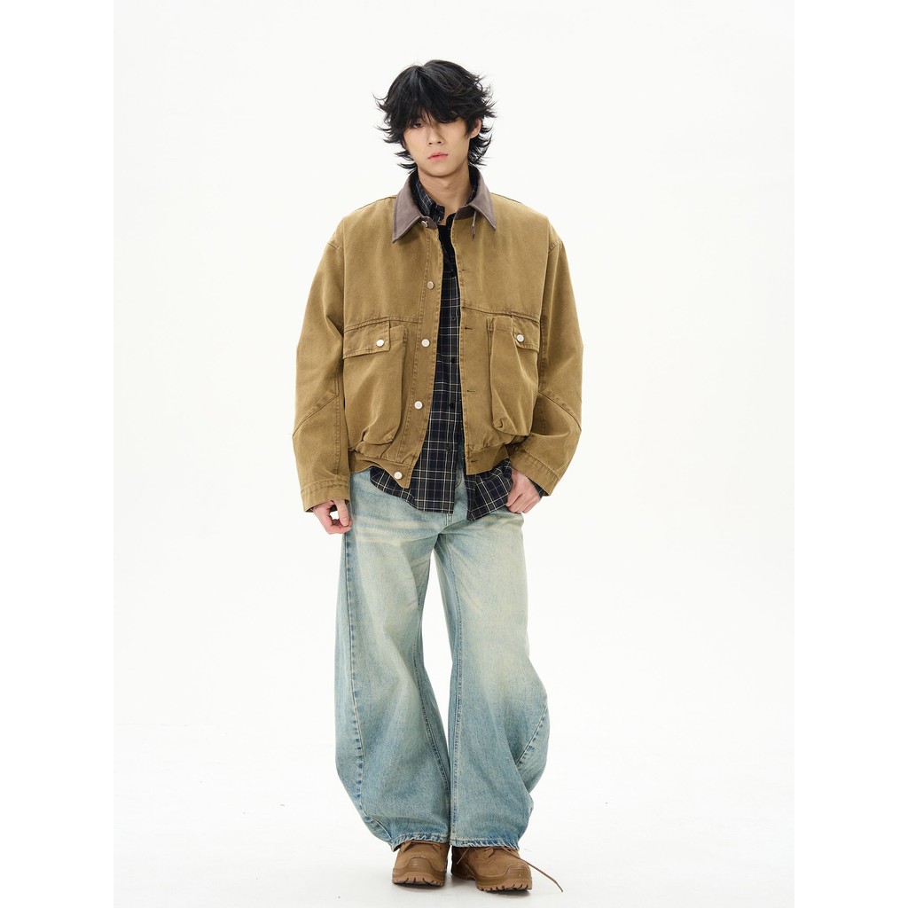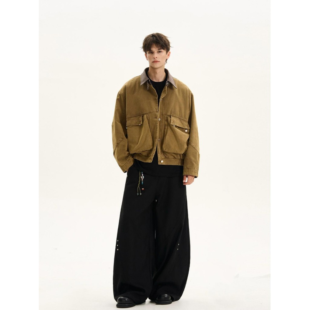 เสื้อแจ็คเก็ตหนังสไตล์อเมริกันย้อนยุค SUIKONE พิมพ์แพทช์วอร์ค สำหรับฤดูใบไม้ร่วง แบบ.Unisex