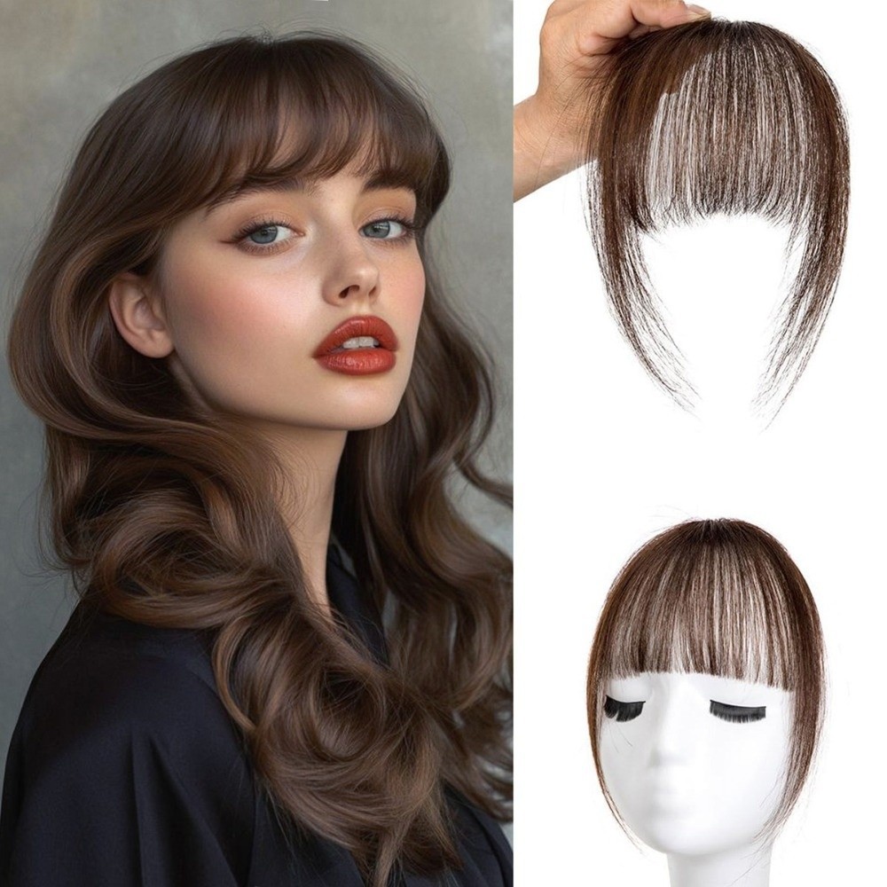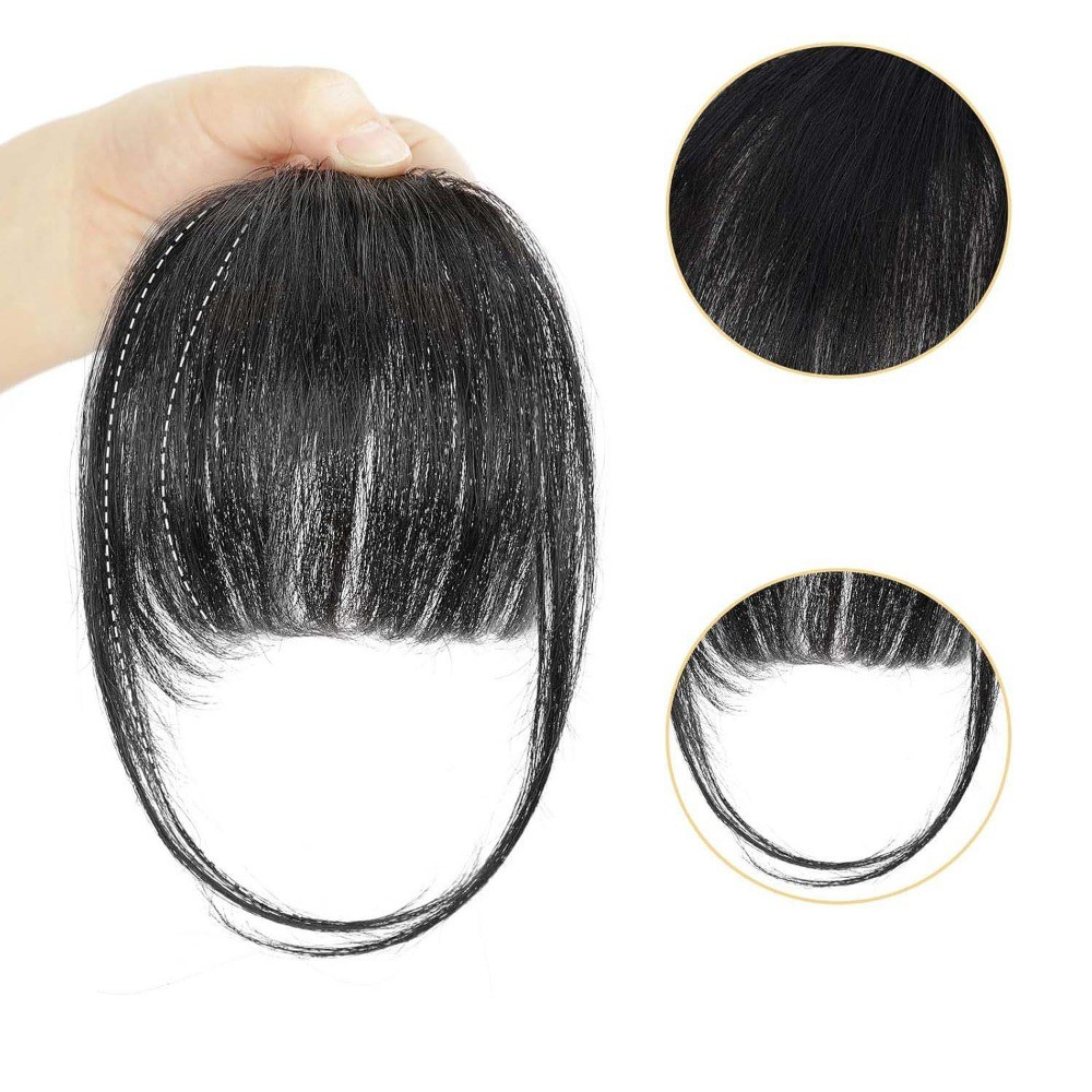 QUINTON Wispy Bangs with Temple, Kawaii Real Human Hair Curved Fringe เครื่องประดับผม, Hairpieces ที่มองไม่เห็น Quick Hair เปลี่ยนธรรมชาติคลิป Air Bangs สําหรับผู้หญิง