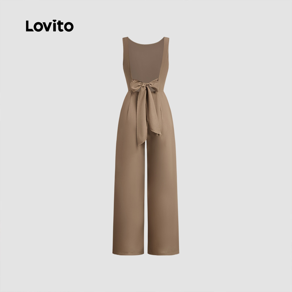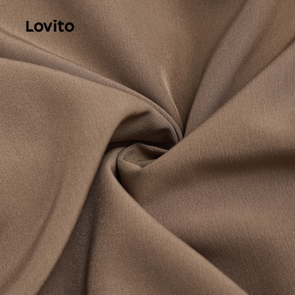 Lovito ชุดจ็อบส์บูทโบฮ์แบบผูกหลัง สำหรับฤดูใบไม้ผลิ/ฤดูร้อน สีกากี สำหรับผู้หญิง L149ED078