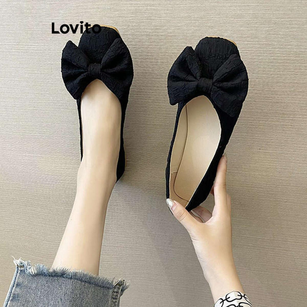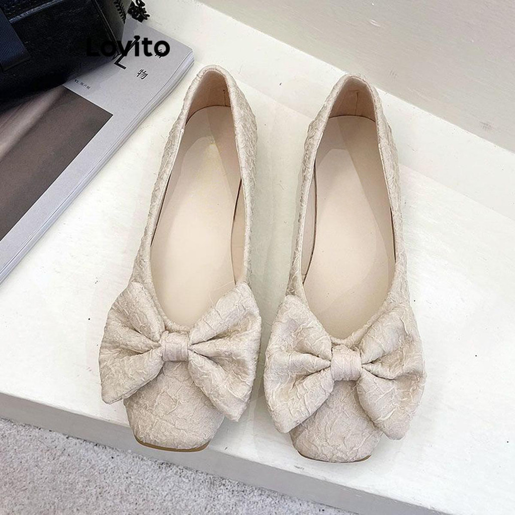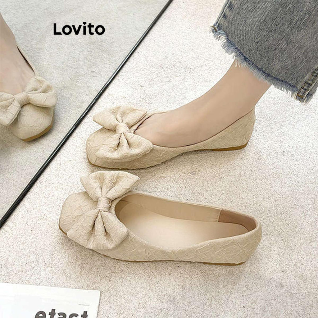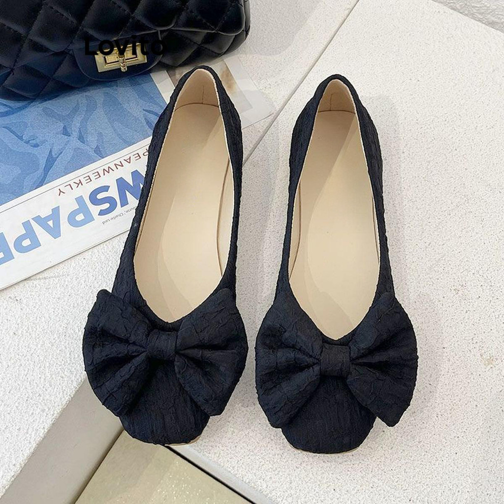 Lovito ลำลองBallet Flats สีพื้นโบว์ประกาศลงทะเบียนฤดูใบไม้ผลิและฤดูร้อนอเนกประสงค์ด้านล่างนุ่มลื่นบัลเล่ต์แบนสําหรับผู้หญิง LFA59322