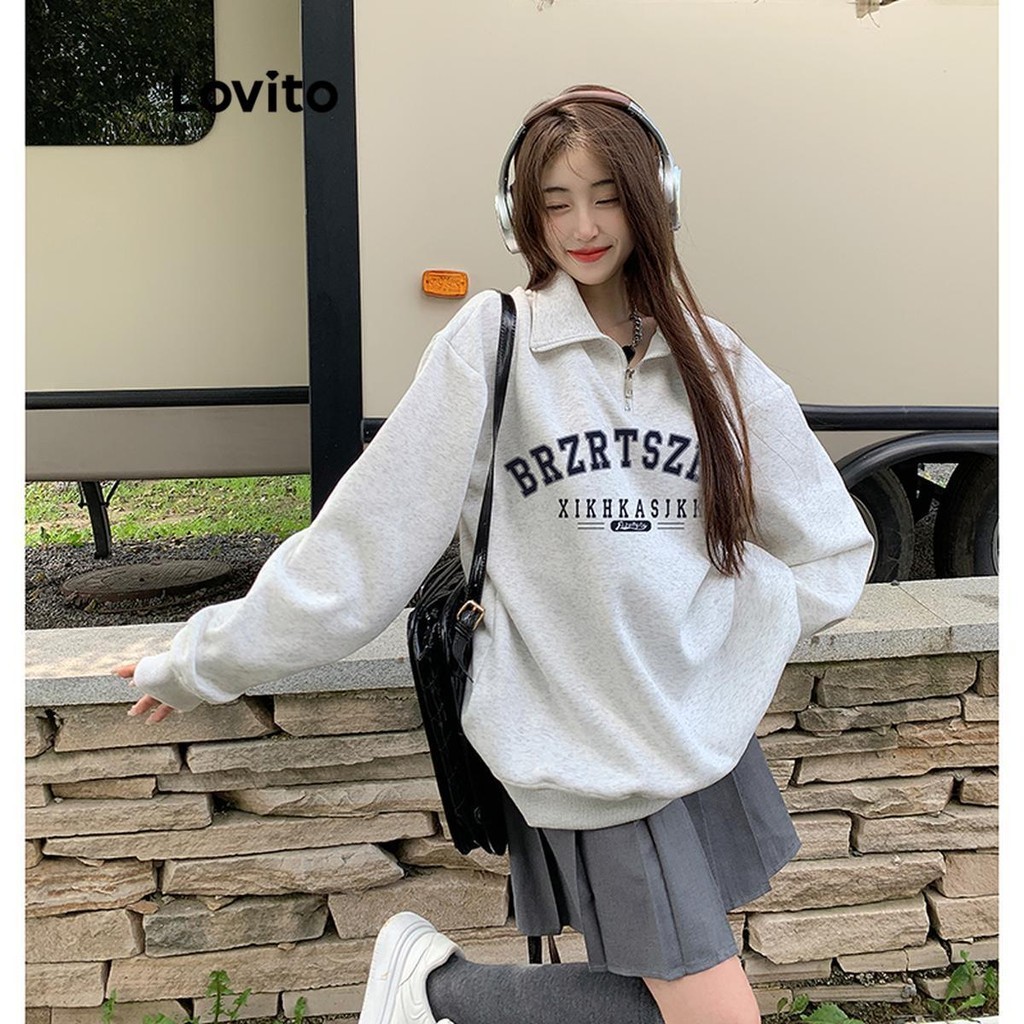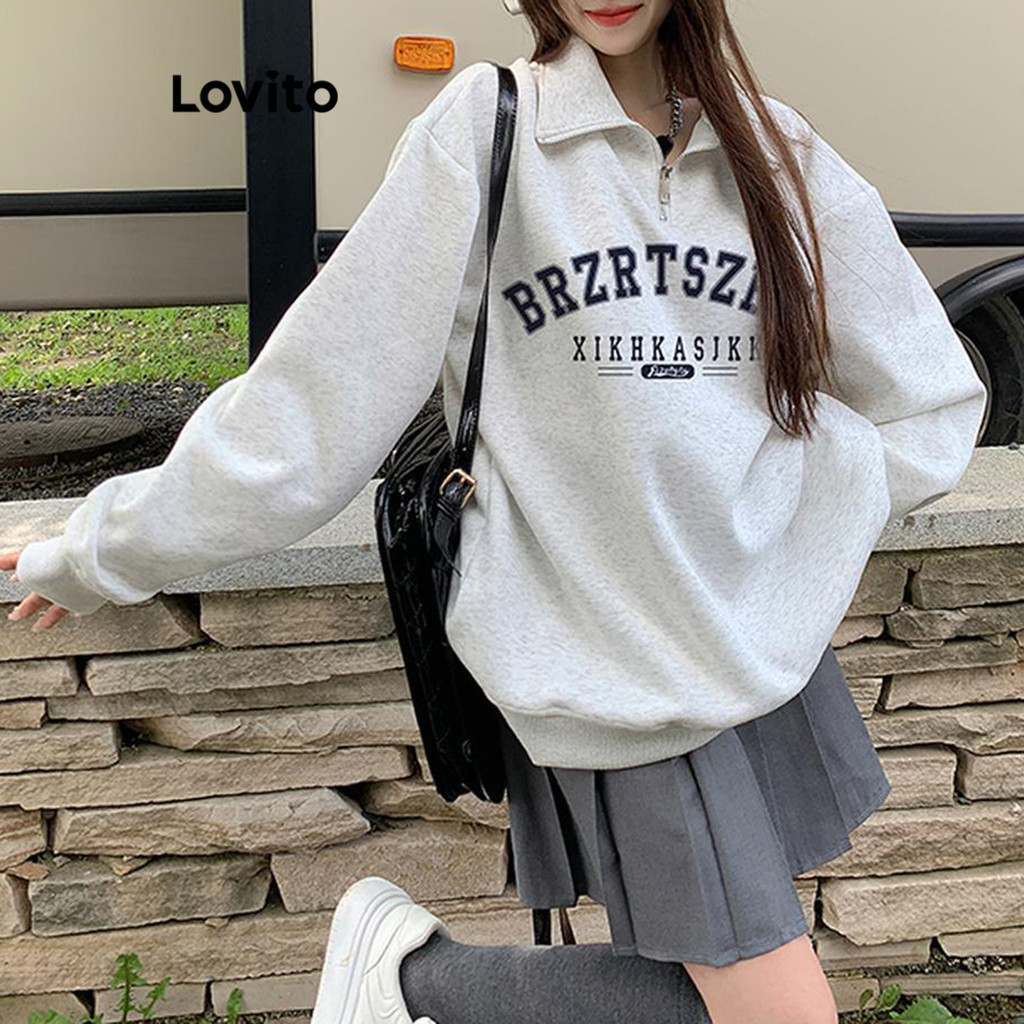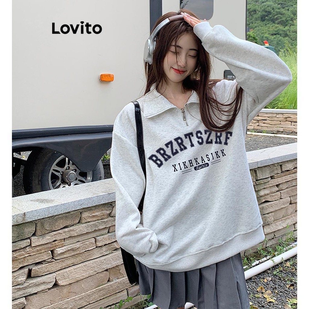 Lovito เสื้อกันหนาวสีพื้น เสื้อกันหนาวมีซิปสําหรับผู้หญิง LNA70581