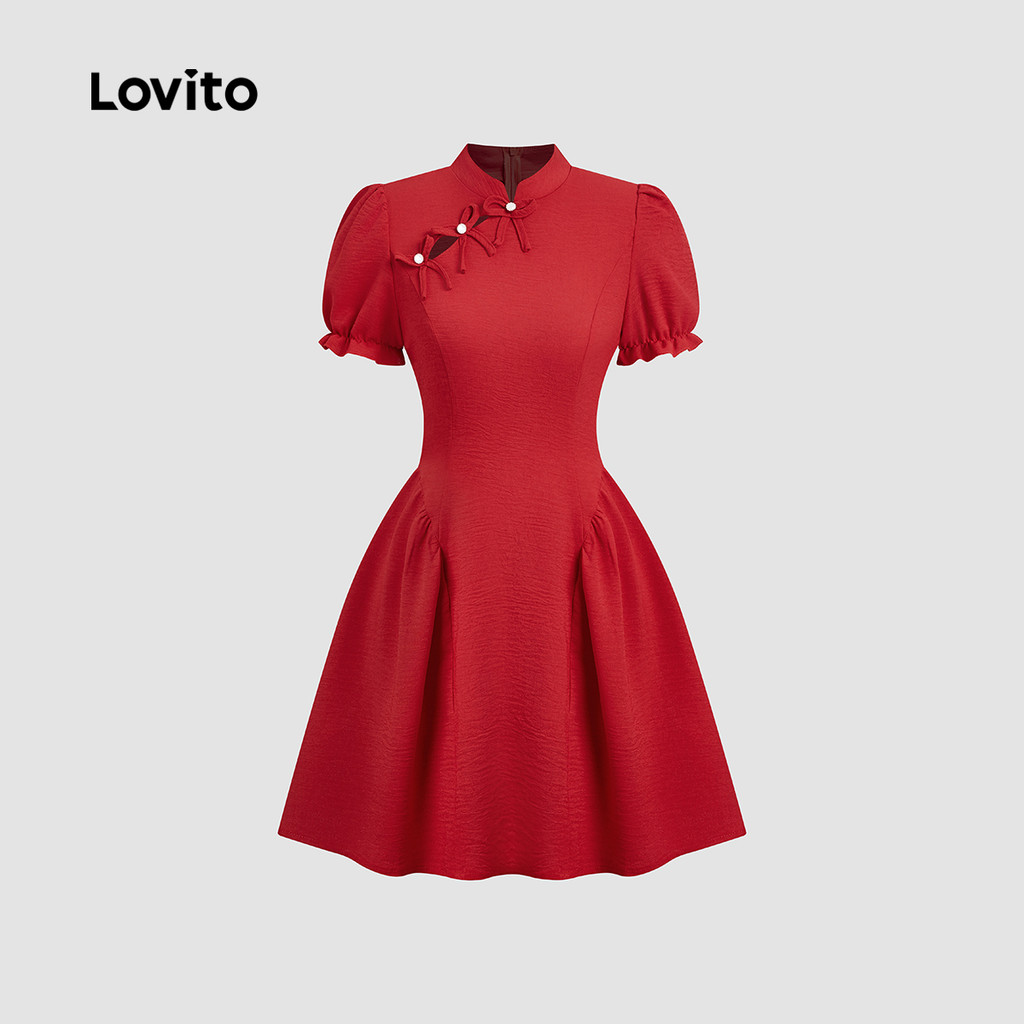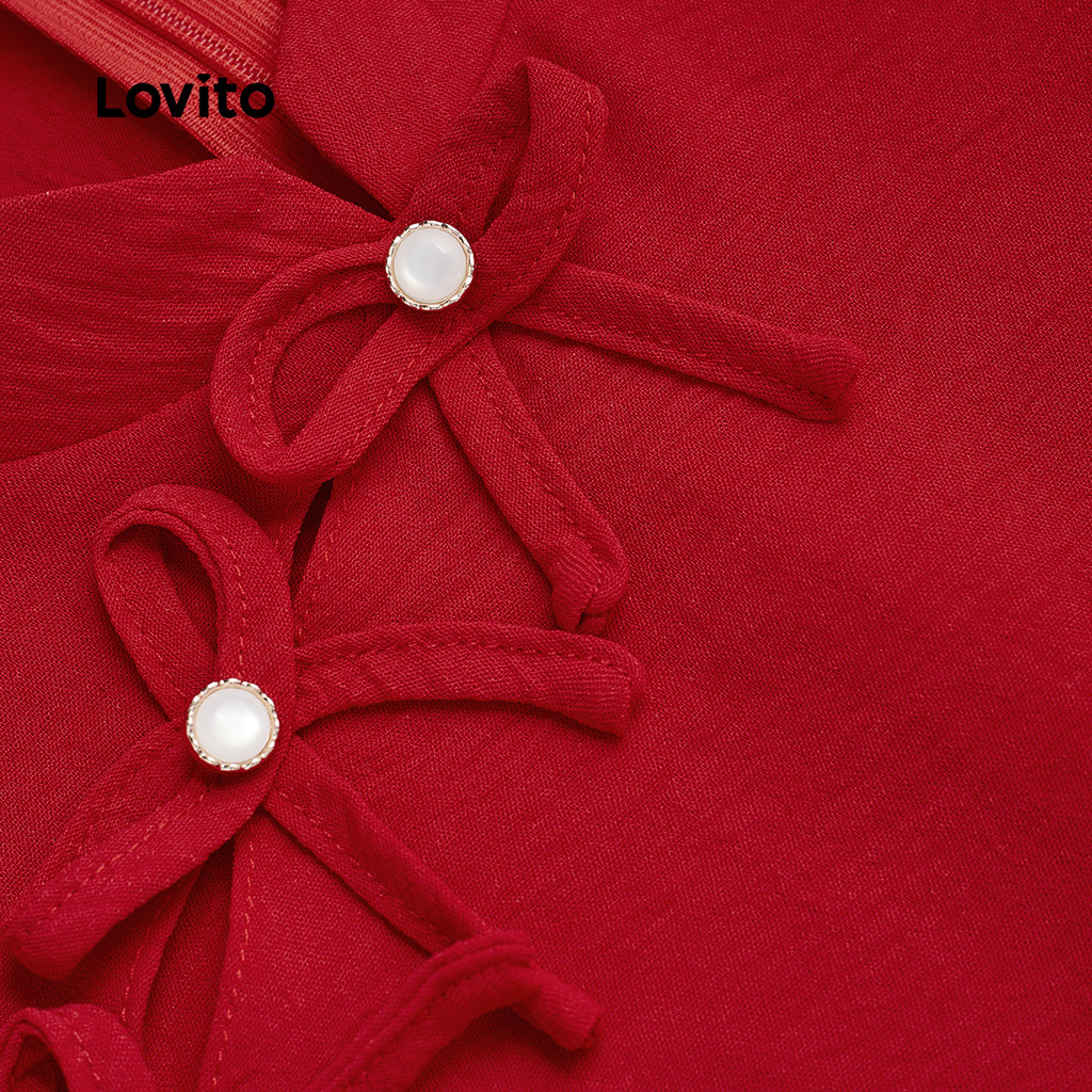Lovito เดรสยาวสีแดงประดับกระดุม ดีไซน์หรูหรา สำหรับฤดูใบไม้ผลิ/ฤดูร้อน สำหรับผู้หญิง L156AD289