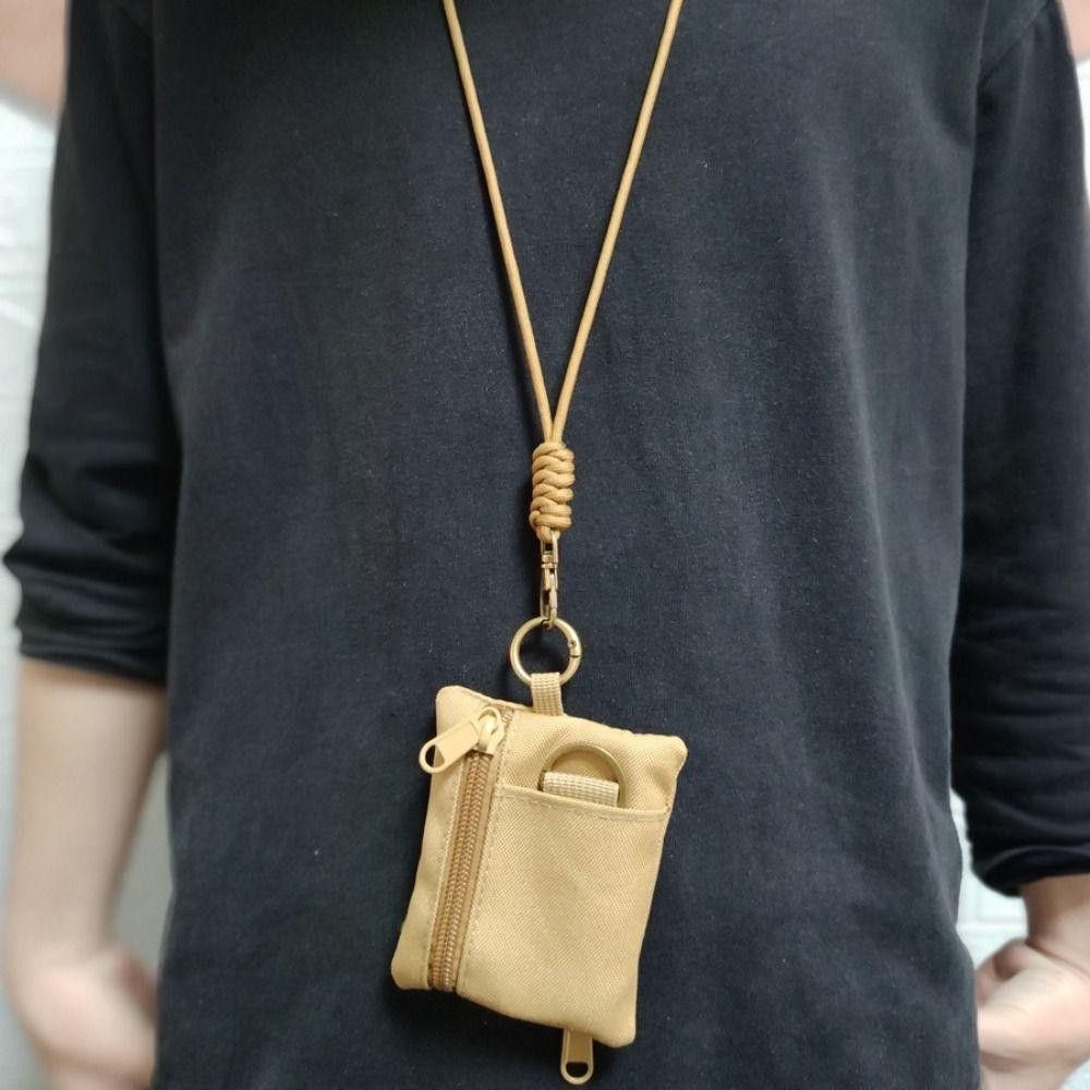 QUILLAN แขวนคอกระเป๋าใส่เหรียญ,สแควร์ซิปผ้า Oxford กระเป๋าสตางค์มินิ,ทนทานพร้อมเชือกเส้นเล็กไนลอนสบายๆผู้ถือบัตรขนาดเล็กกีฬา