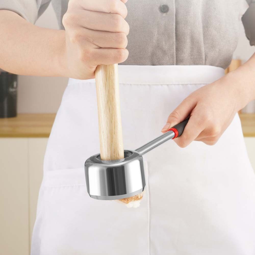 QUILLAN เครื่องมือเปิดมะพร้าว ค้อนยางสแตนเลส ชุดเบรกเกอร์มะพร้าว ใช้งานง่าย ด้ามไม้ เครื่องเจาะมะพร้าวสําหรับงานหนักอเนกประสงค์ เปิดผลไม้