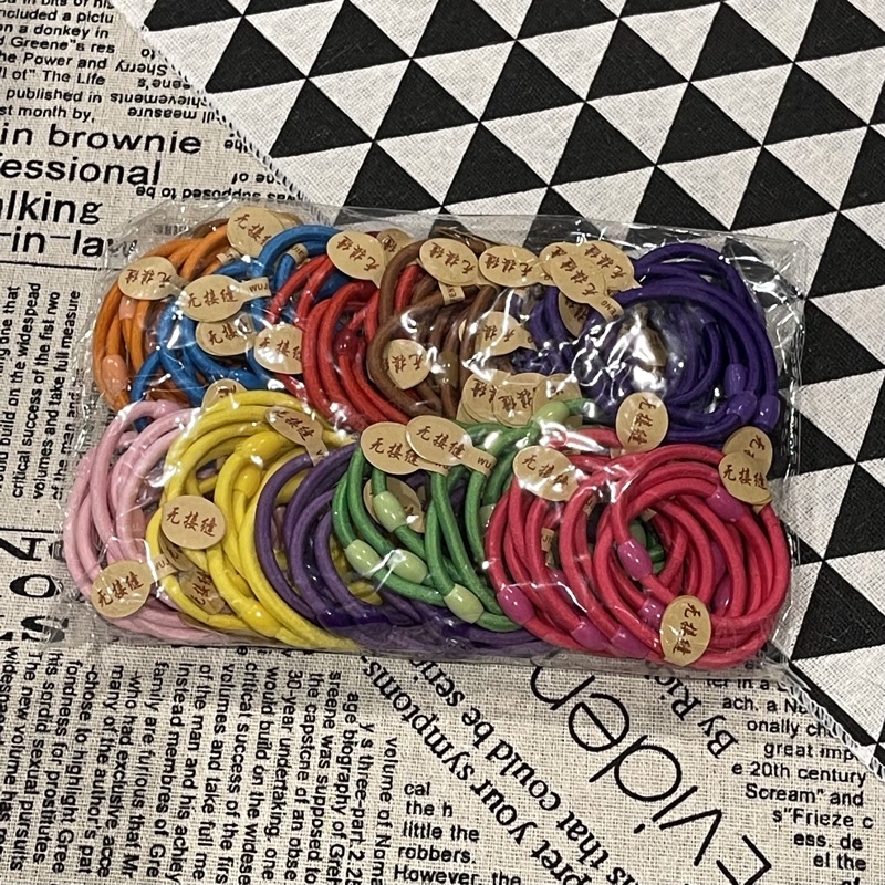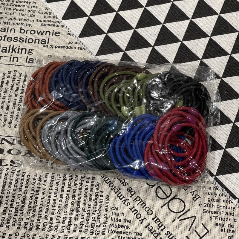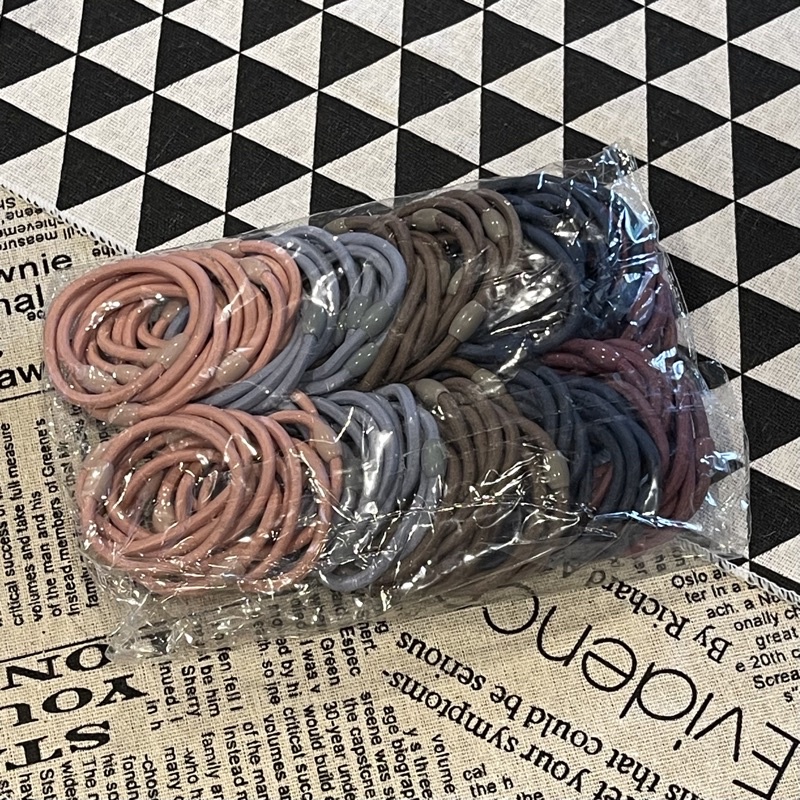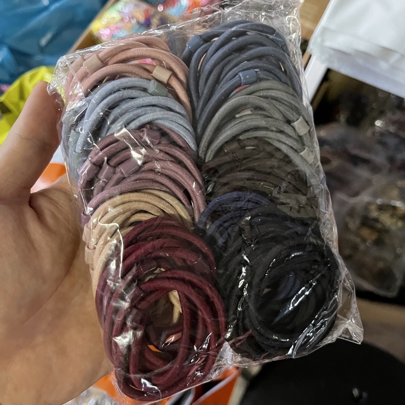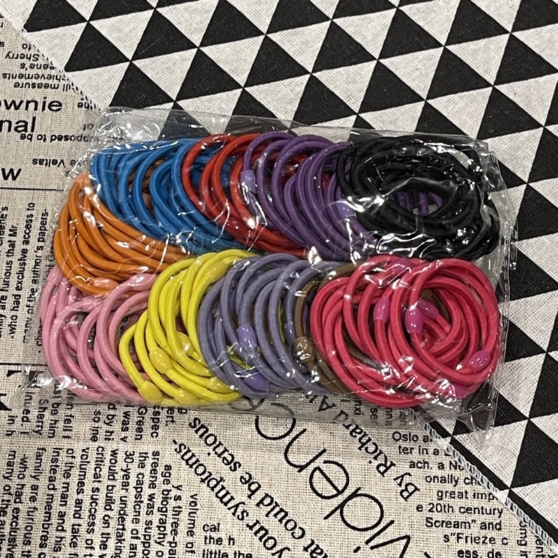 ยกแพค 100 เส้น คละสี ยางรัดผมหลากสี คุณภาพดี ไม่กินเส้นผม มีจี้ตามสี 5 สี สีดำ มินิมอล พาสเทล