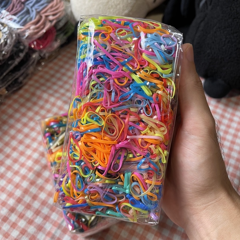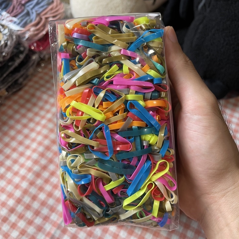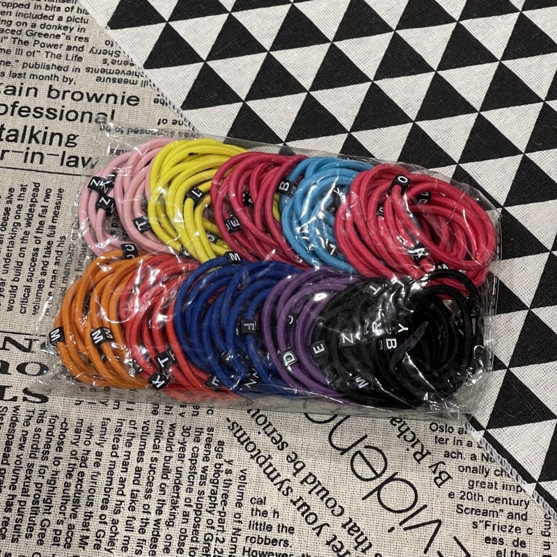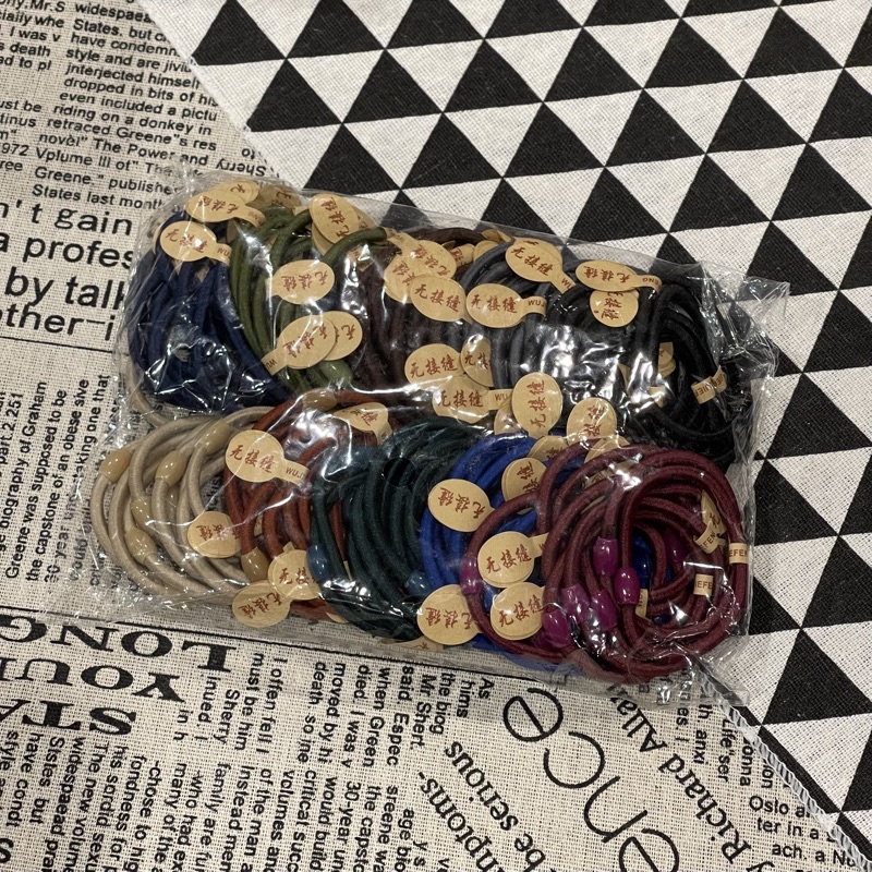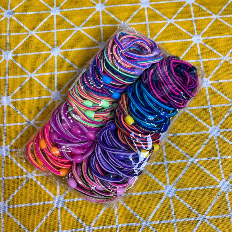 ยกแพค 100 เส้น คละสี ยางรัดผมหลากสี คุณภาพดี ไม่กินเส้นผม มีจี้ตามสี 5 สี สีดำ มินิมอล พาสเทล