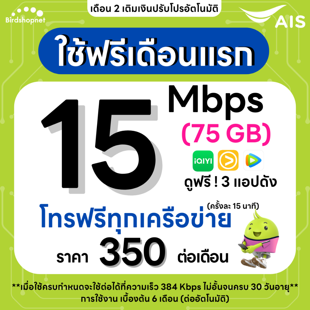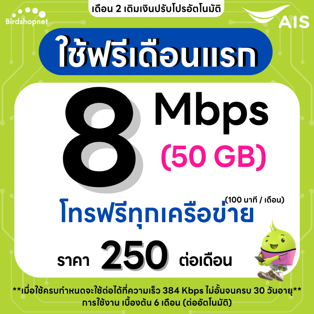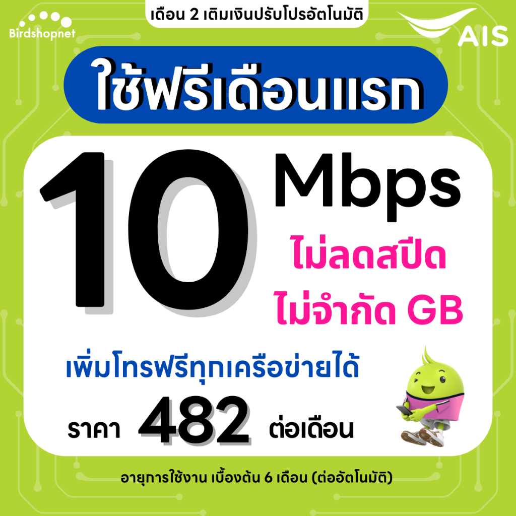 (ใช้ฟรีเดือนแรก) ซิมเทพ AIS เน็ตไม่อั้น 1000 Mbps + เพิ่มโทรฟรีทุกเครือข่าย 24 ชม.ได้ (ใช้ฟรี AIS Super WiFi)