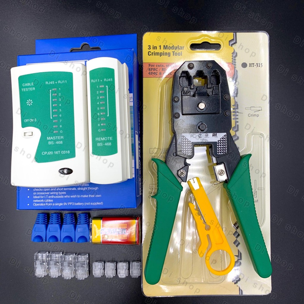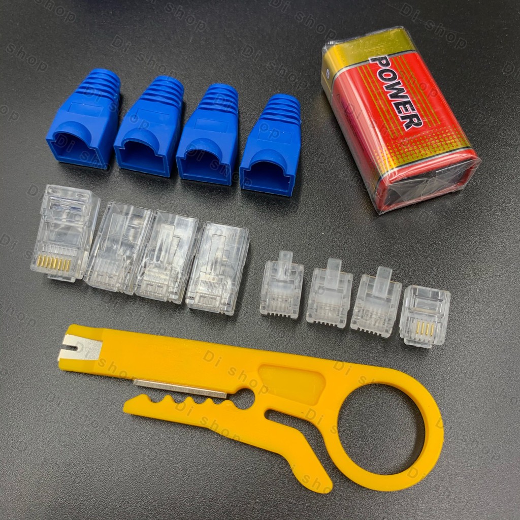 Di shop คีมเข้าหัวแลนครบชุด พร้อมที่เทสสาย + หัวแลน + หัวโทรศัพท์ + บูทแลน