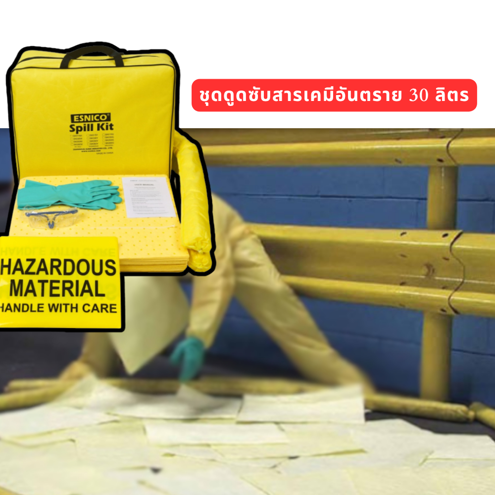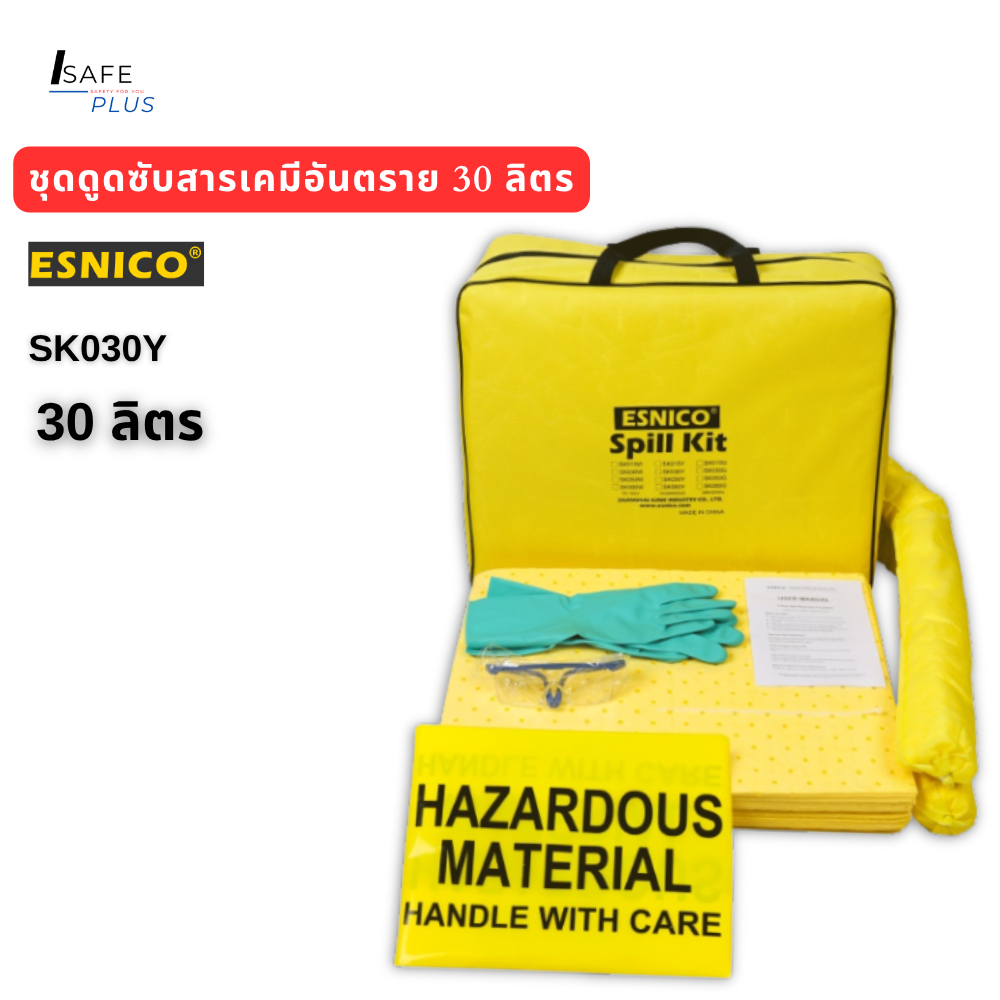 Spill Kit ชุดดูดซับสารเคมีอันตราย อุปกรณ์ครบชุด แผ่น/ท่อนซับ ถุงมือ ถุงขยะ แว่นตา ESNICO 30L รุ่น SK030Y