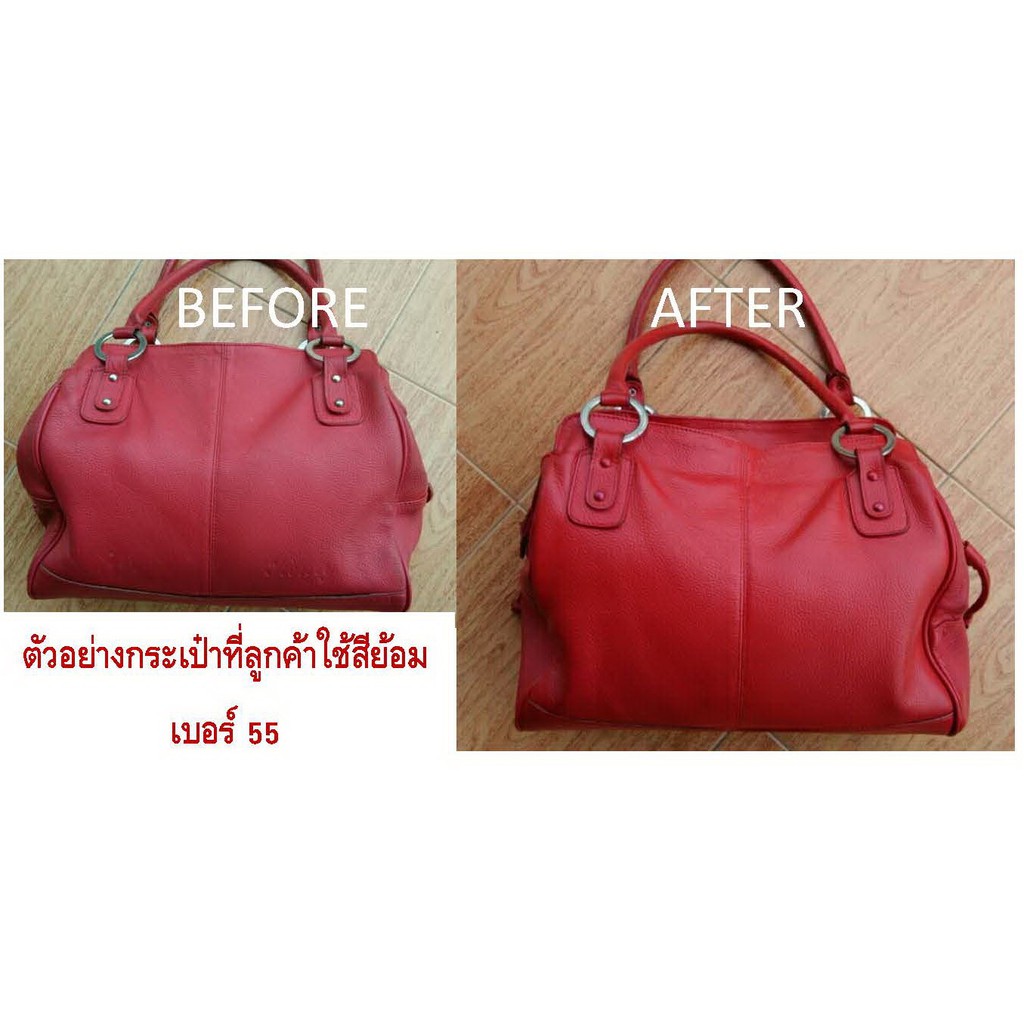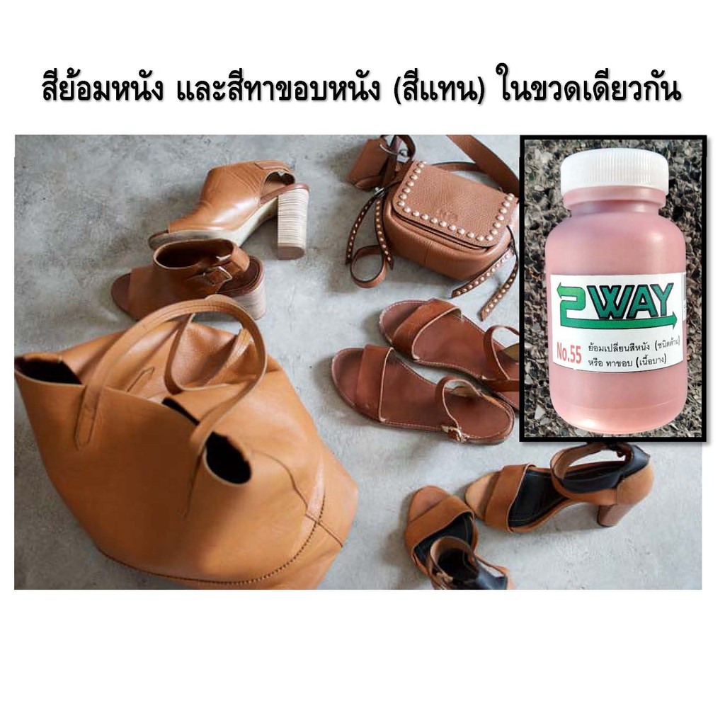 สีย้อมเปลี่ยนสีหนัง และสีทาขอบหนัง สีแทน เบอร์ 55 (ทำได้ 2 อย่างในขวดเดียว) ย้อมกระเป๋า รองเท้า เข็มขัด