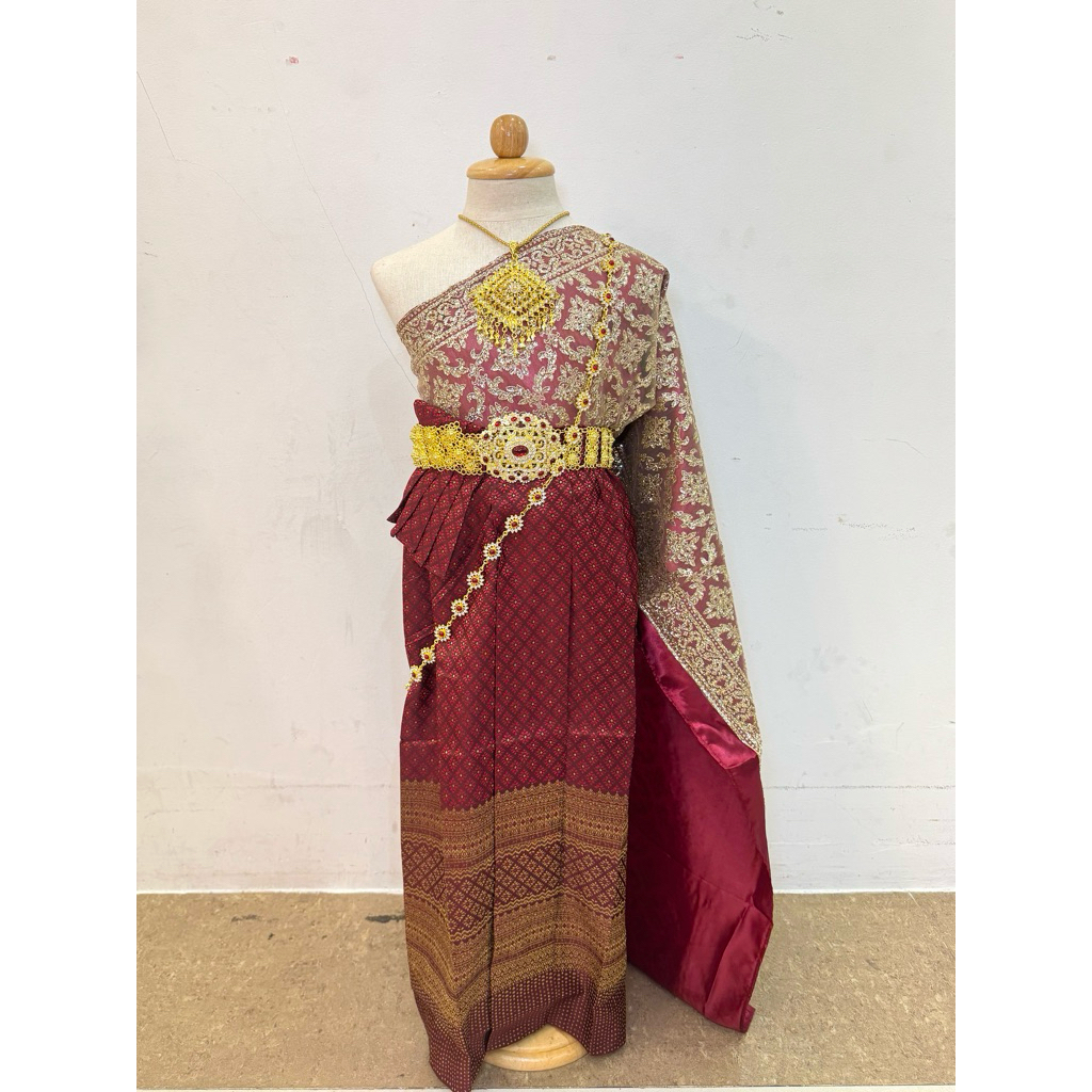 ชุดไทยเด็กสีเลือดหมู สไบเลื่อมเกาะอกเลือดหมูทอง แมตท์กระโปรงไหมทอสีเลือดหมู สวยสง่างาม🪷❤️✨