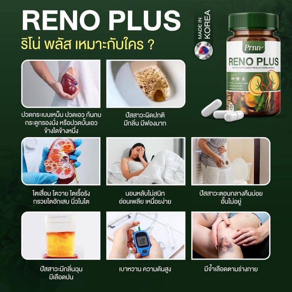 1กระปุก RENO PLUS รักษา อาการจาก ภาวะ ไตเสื่อม ไตวาย ดูแลไตให้แข็งแรง บำรุงไต ระบบเลือดไหลเวียนดี 30เม็ด