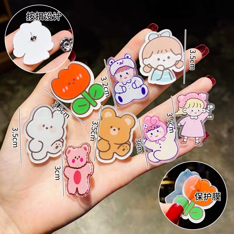 เข็มกลัดอะคริลิค 1ชิ้น ลายการ์ตูนหมีน่ารัก สําหรับติดตกแต่งกระเป๋า เสื้อผ้า
