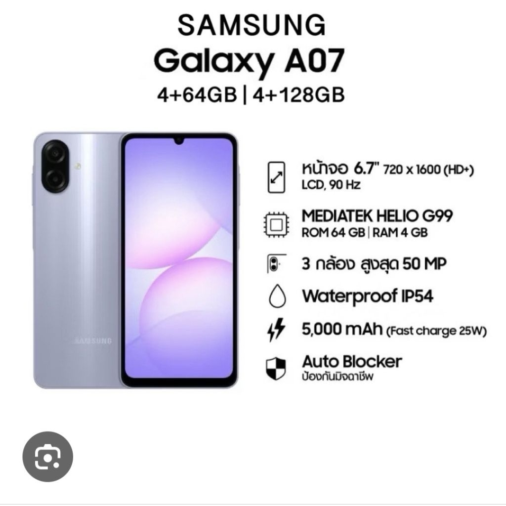 Samsung A07 (4/64GB) ประกัน 3 เดือน ราคาประหยัด