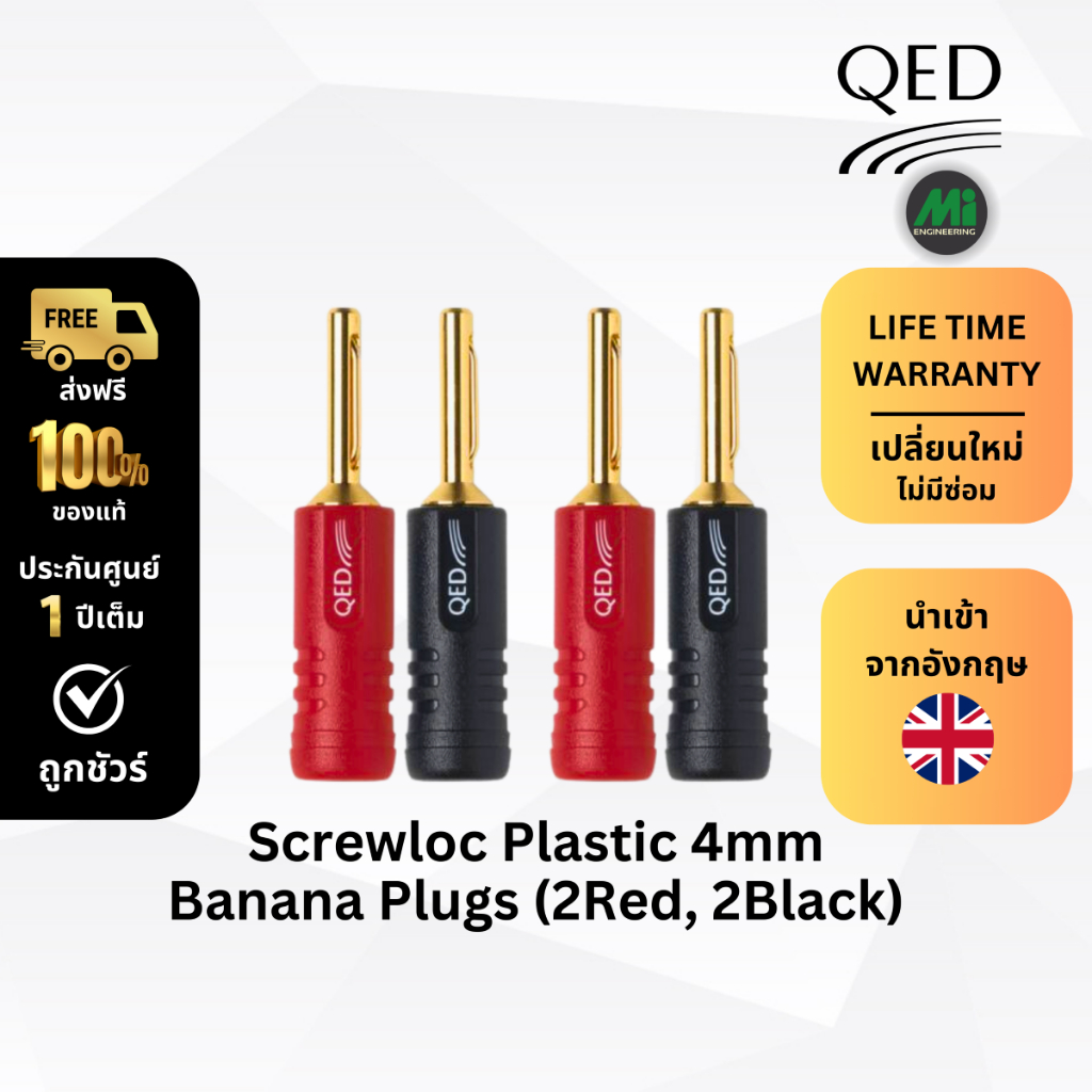 QED รุ่น Screwloc 4mm Gold Plated Banana Plugs (4PCS/SET)